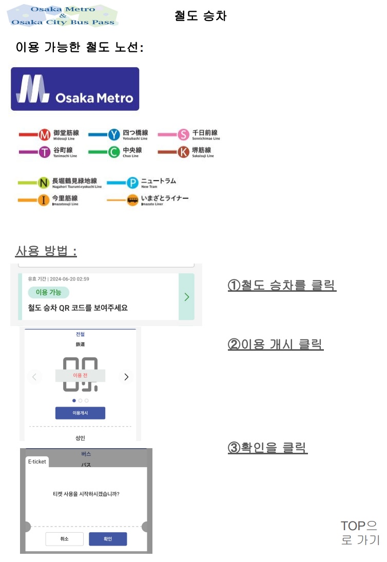 https://subway.osakametro.co.jp/guide/page/osakametro_routemap_d/routemap_2025.pdf・ 기타 Osaka Metro 및 오사카 시티 버스에 대한 자세한 내용은 아래 링크에서 확인하실 수 있습니다