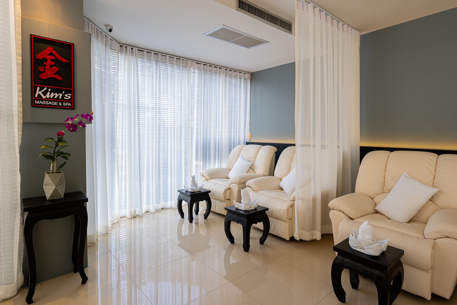 ・ Kim's Massage and Spa의 아름다운 인테리어를 감상하며 무료로 제공되는 향긋한 차 한 잔으로 방문을 마무리하세요.