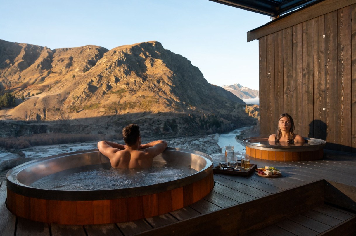 ・ 퀸스타운의 산과 강 전망을 감상할 수 있는 프라이빗 삼나무 온수 풀