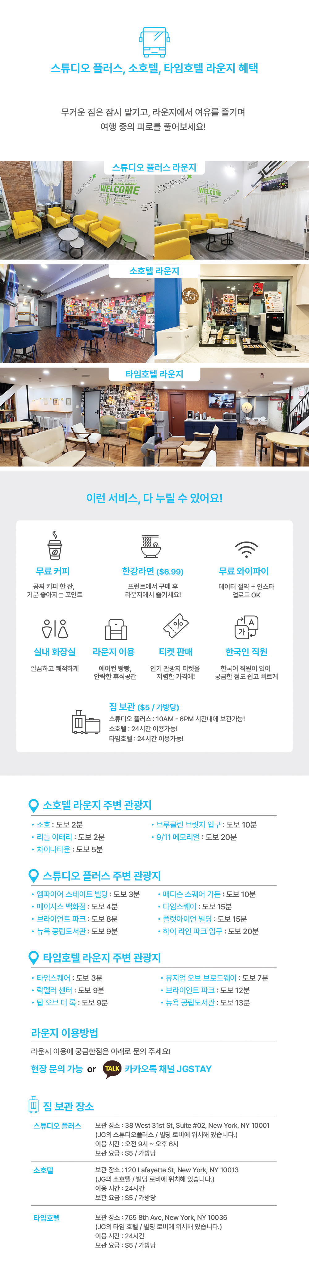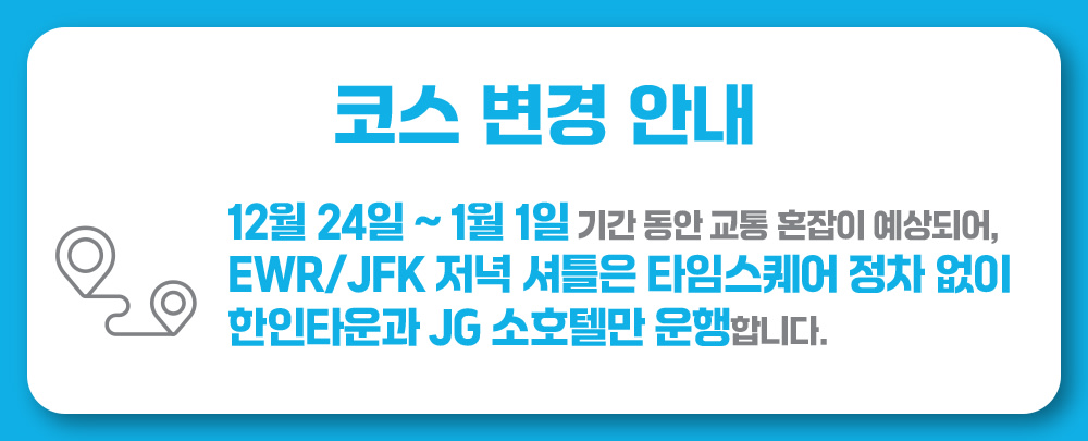 ・밤 출발 = 8:40 AM (소호텔) / 9:00 PM (한인타운) / 9:20 PM (타임스퀘어)