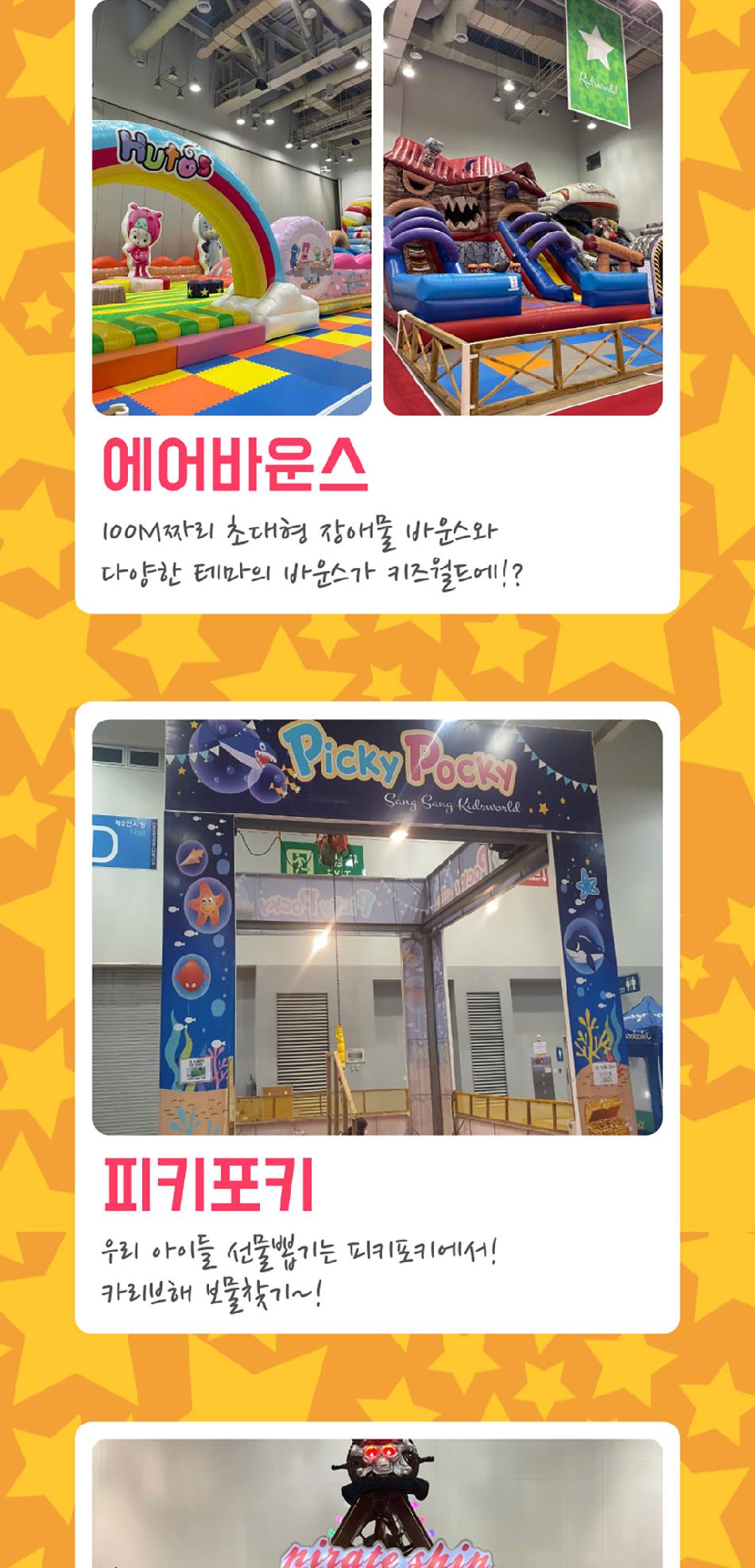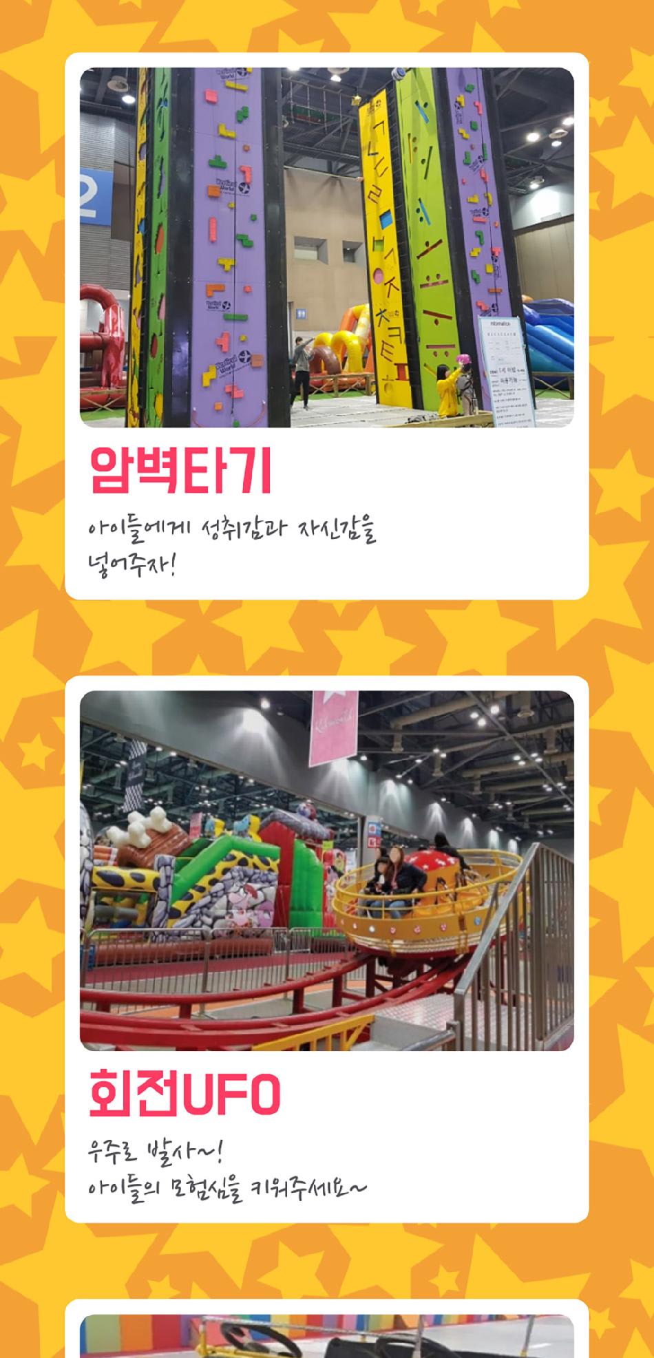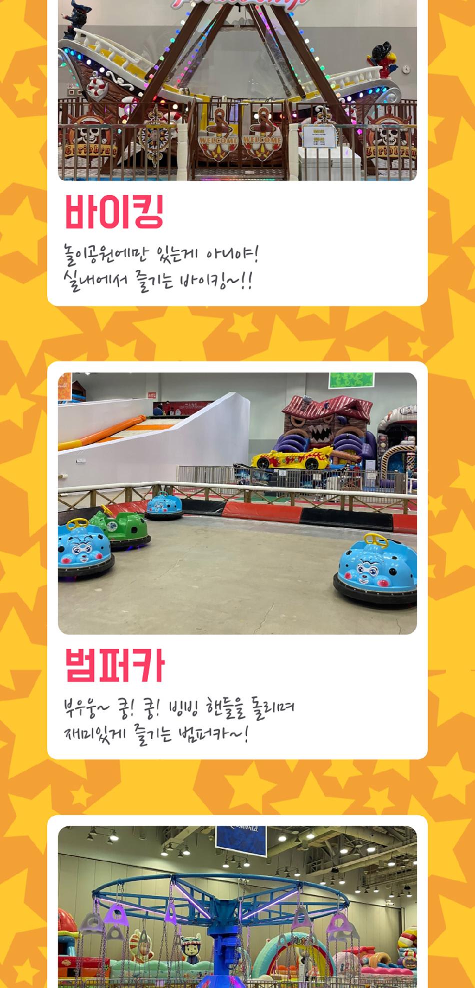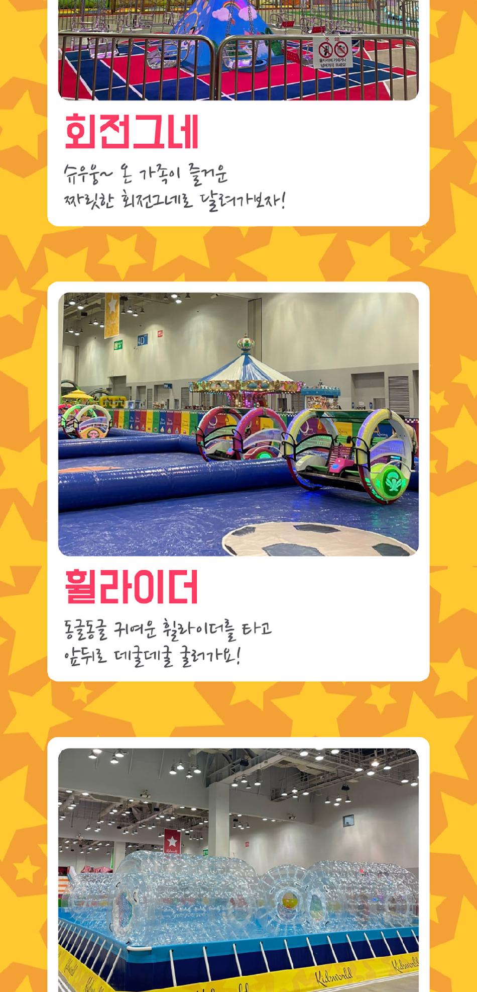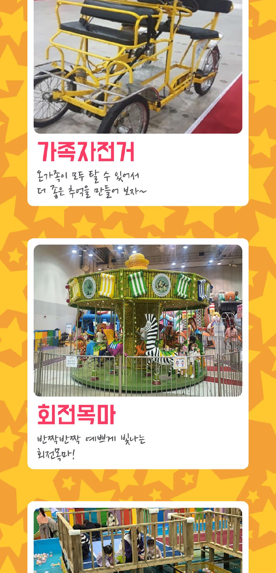 에어바운스, 미니 레이싱카 등 다양한 놀이 시설이 가득해 아이들이 좋아해요.