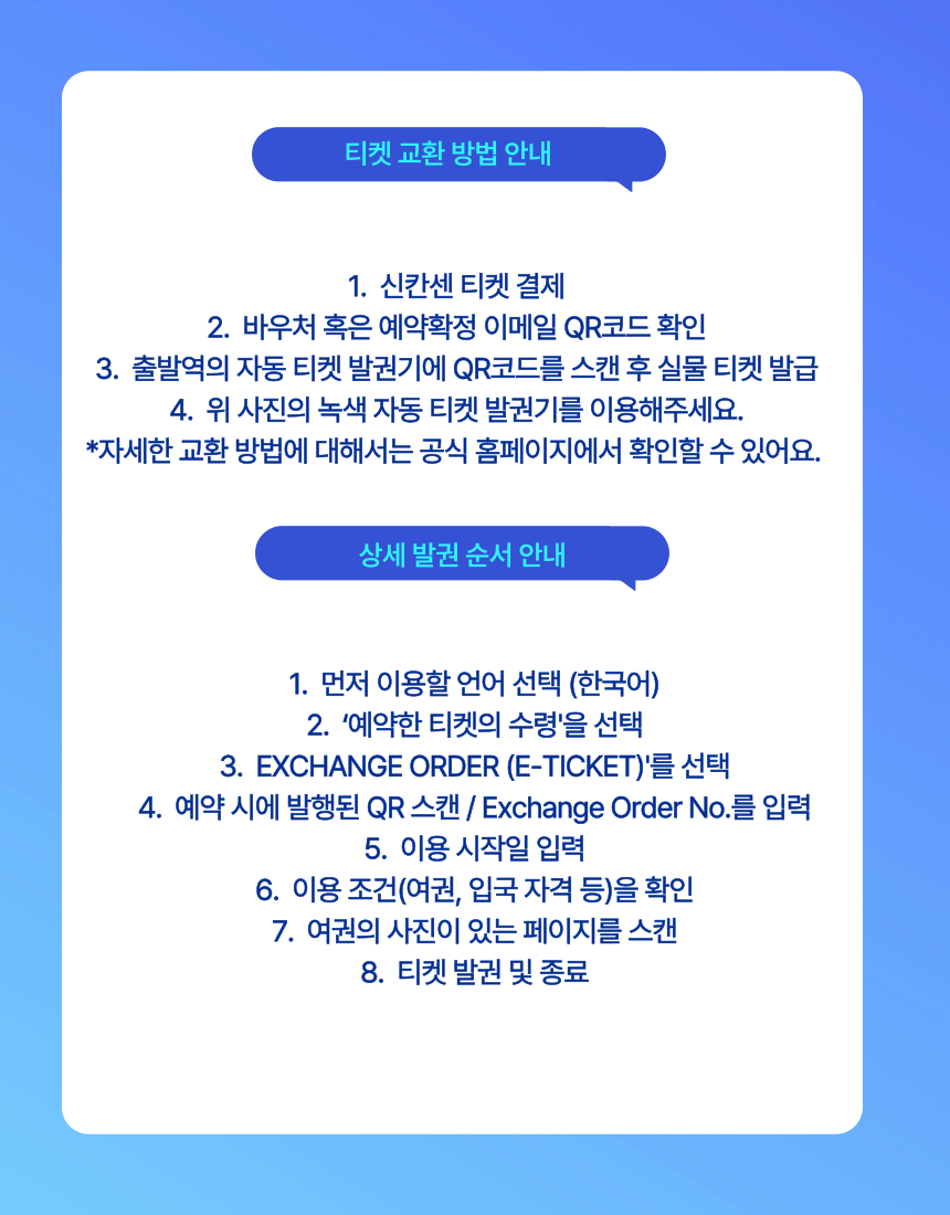 3. 발권 시 여권 확인 절차가 있으므로 여권을 꼭 지참해 주세요.