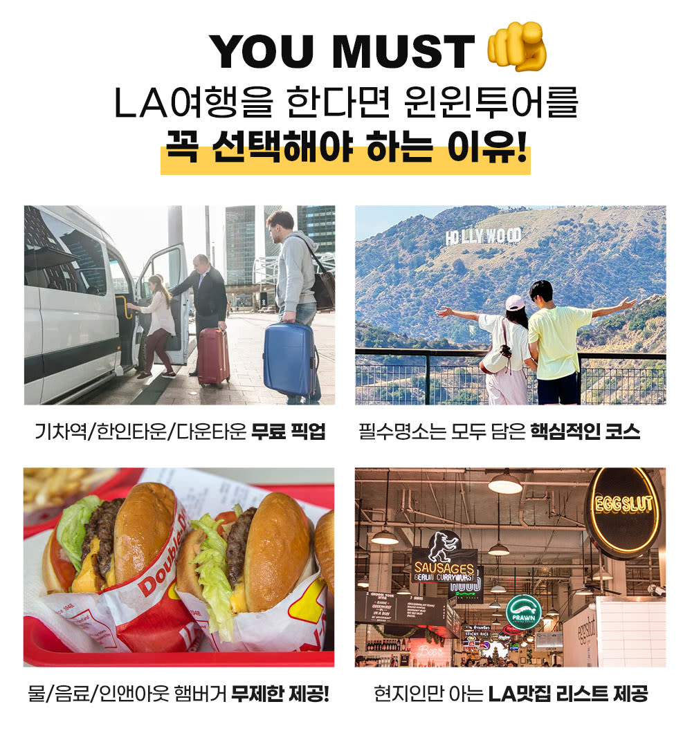 [전부포함/공항픽업옵션] 엘에이 필수 명소 10시간 전문 가이드와 인앤아웃 포함! 윈윈투어