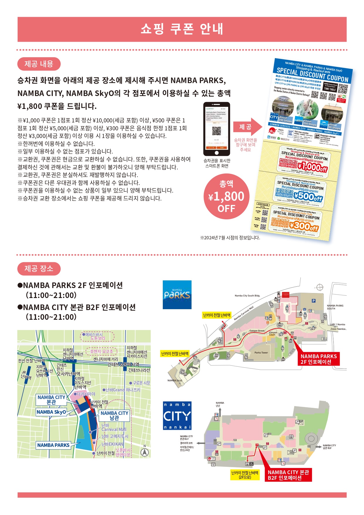 ・승차권을 제공 장소에 제시하면 1,800엔 쿠폰을 드립니다!