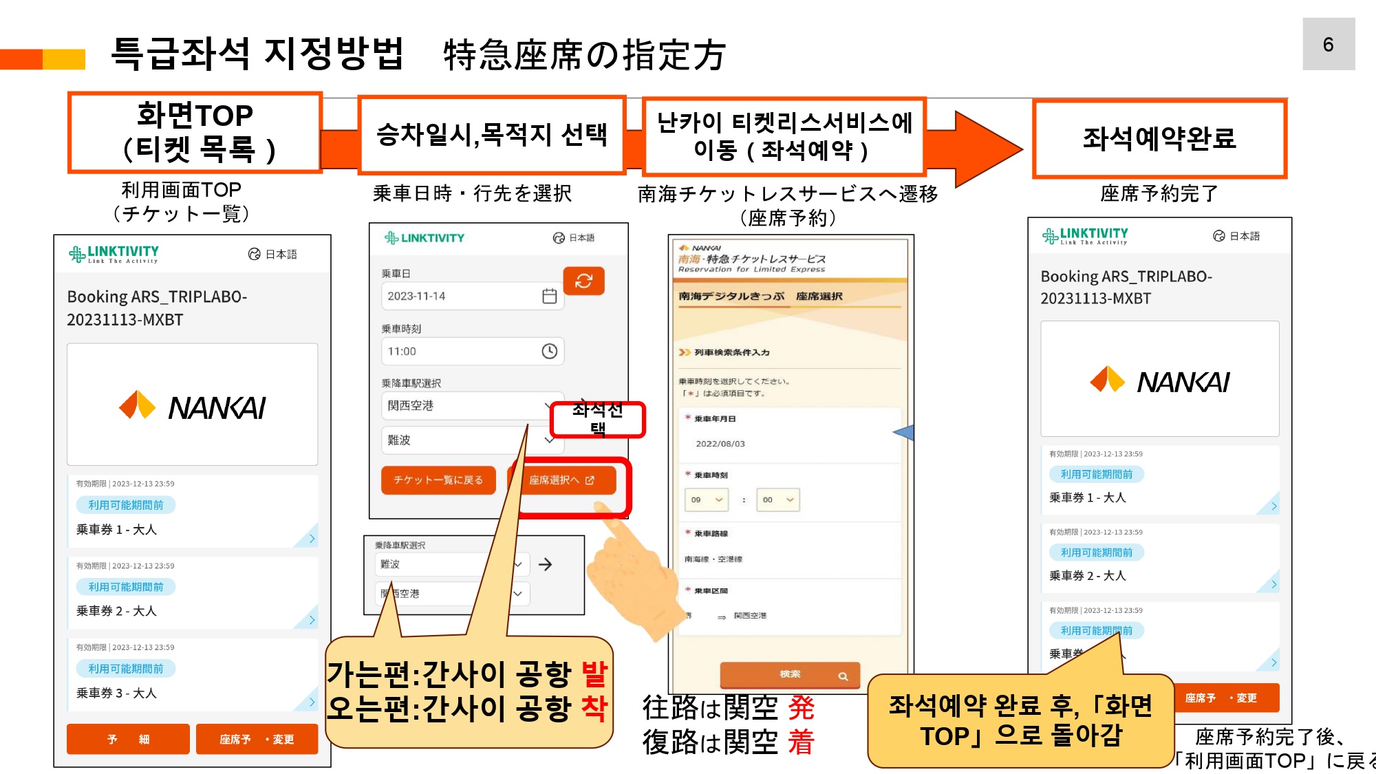 ・・ 매주 화요일은 일본 현지시간 (한국의 경우, 동일) 오전 3시부터 4시 30분까지 난카이측 시스템 정비로 인해 좌석 선택이 불가합니다