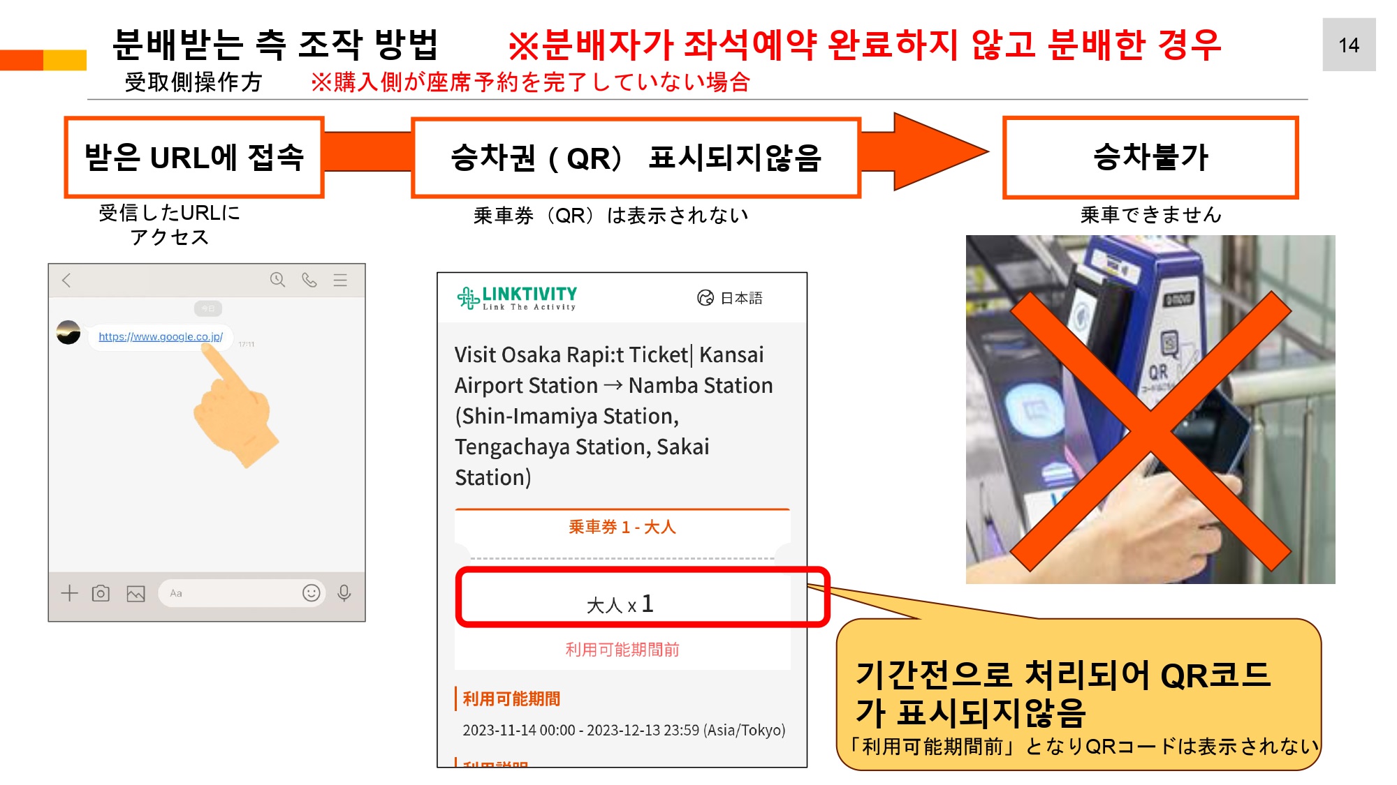 ・・ 이용일 당일 지정한 열차를 타지 못한 경우, 이용 당일까지는 QR code가 표시되며 해당 QR code로 일반 전철 이용이 가능합니다