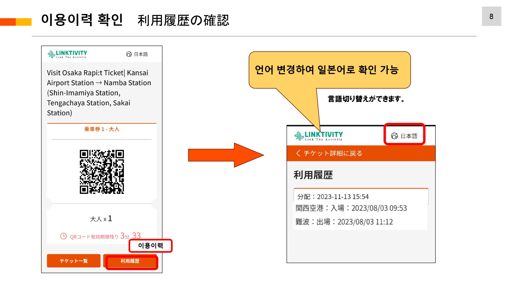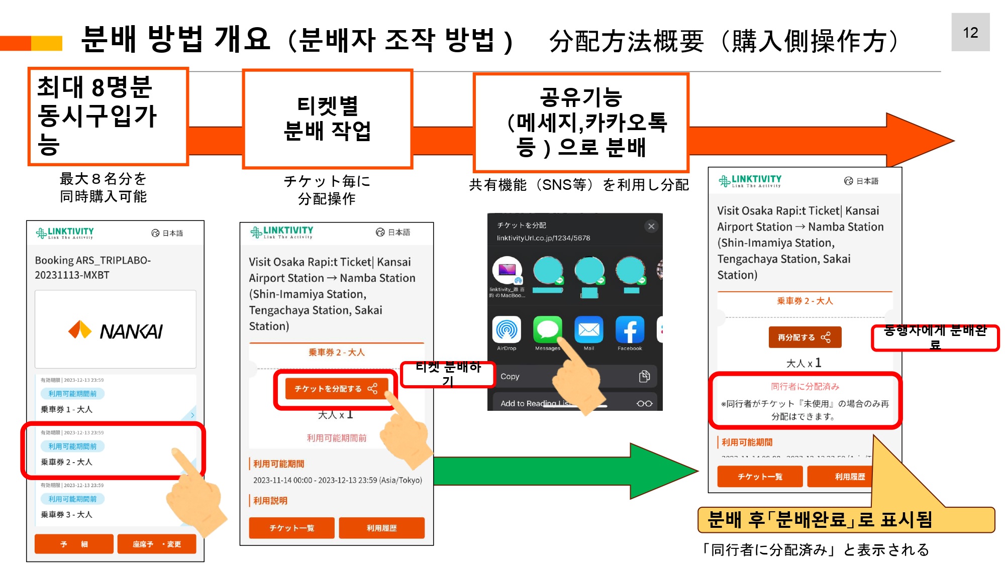 ・・ 같은 날 간사이공항 발착 승차권은 각각 최대 8명분까지 구매할 수 있습니다.