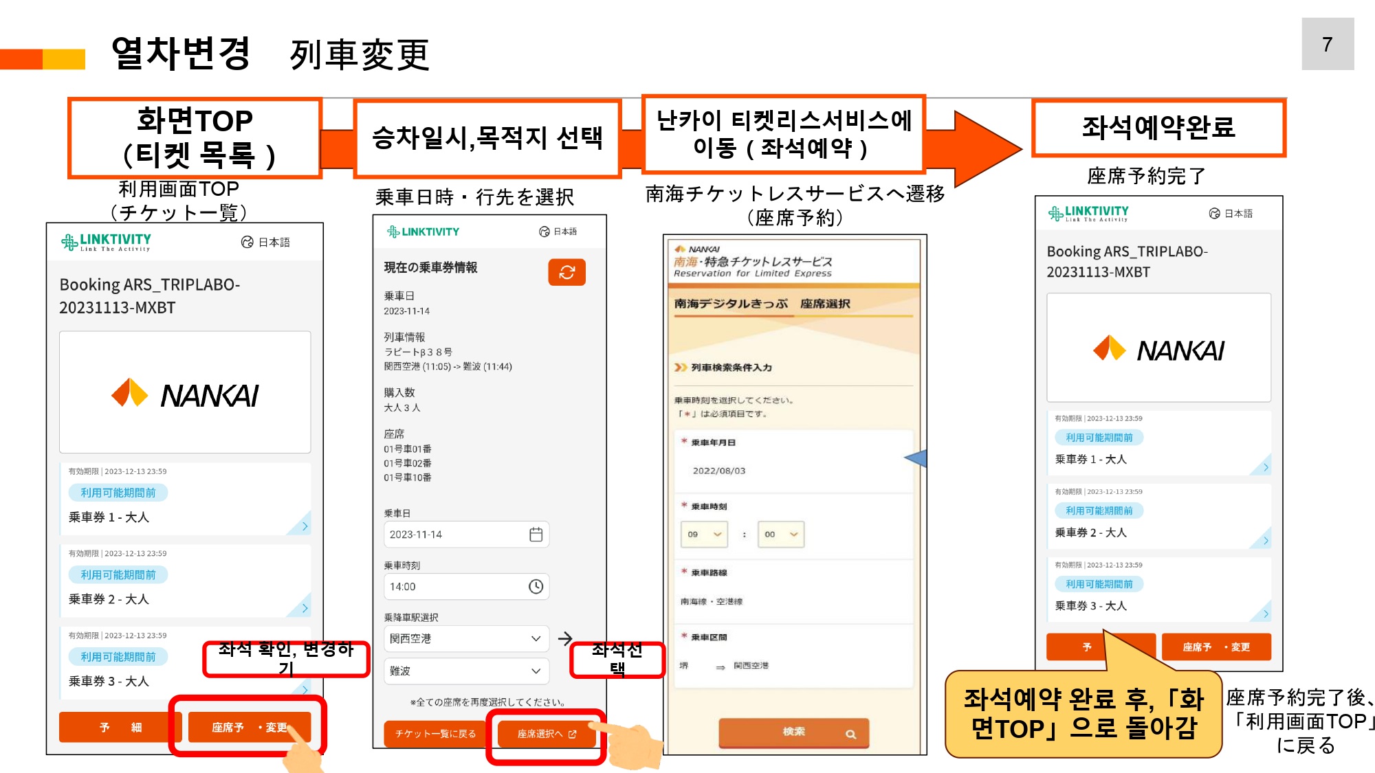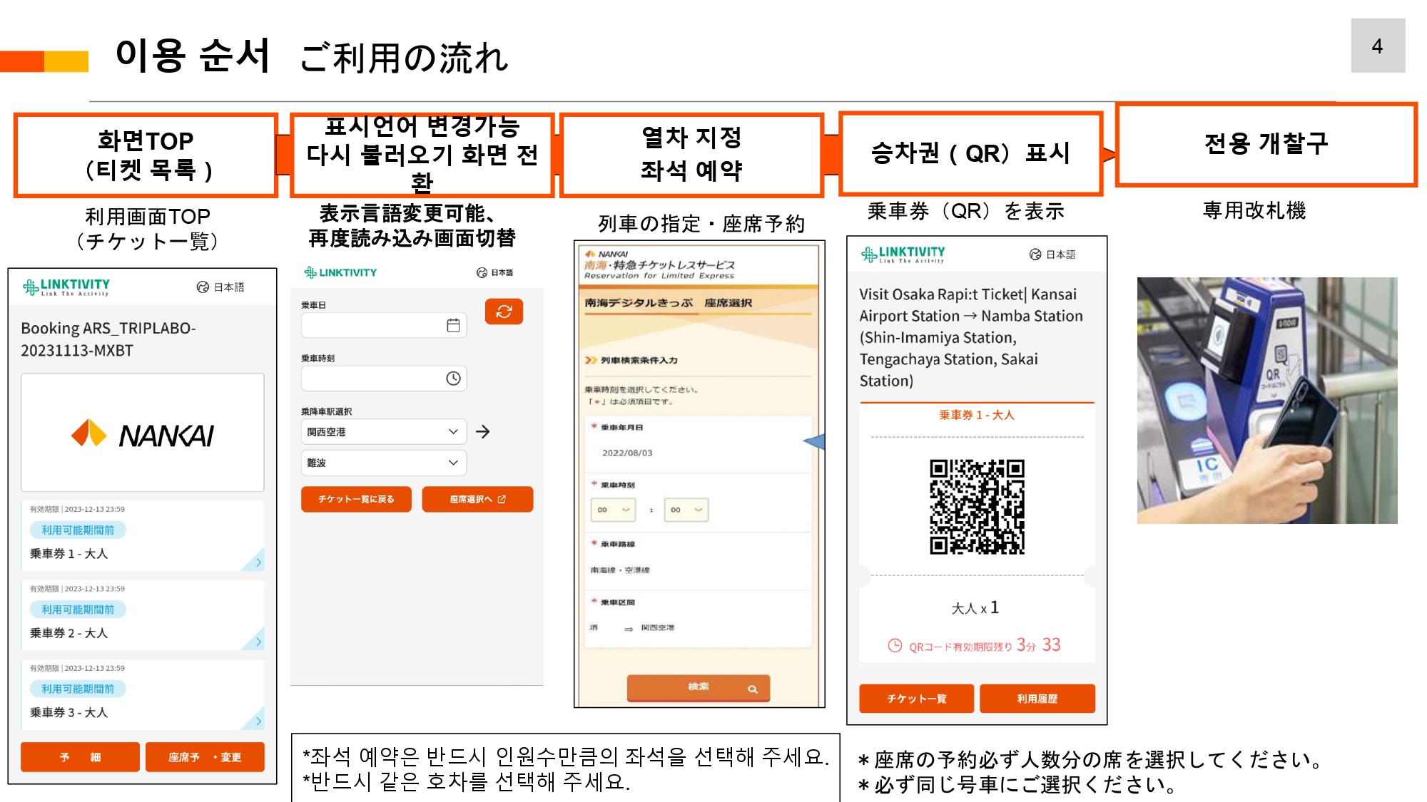 ・ 난카이 라피트 열차의 중지가 아닌 상황에서의 취소 및 환불은 불가능합니다 (비행기 결항, 개인 사유 등 모두 불가)