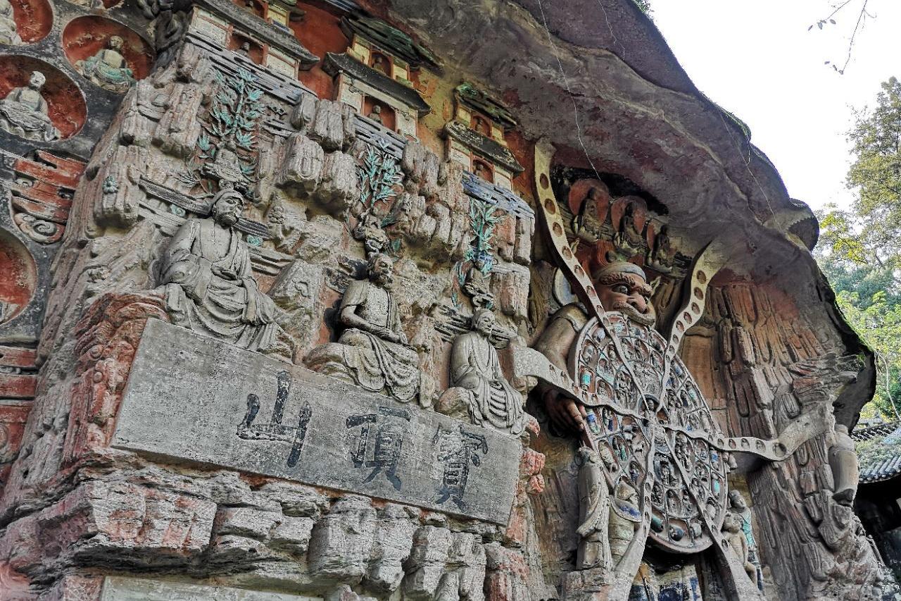 🏔️ 보정산석각 보정산석각은 대족석각 중 규모가 가장 크고 내용이 가장 풍부한 부분으로, 송대 고승 조지봉이 주관하여 개착되었으며, 중국 석굴 예술의 집대성이라 할 수 있습니다. 경구는 웅장한 서사적 석각군으로 유명하며, 불교 이야기를 연속적으로 보여주는 "목우도"와 웅장한 "석가모니열반도" 등이 있습니다. 특히 천수관음 조상은 천 개의 손과 천 개의 눈의 정밀한 조각으로 감탄을 자아냅니다.