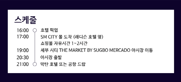 실속 투어로 저렴한 요금에 알차게 세부의 밤을 즐기실 수 있어요!