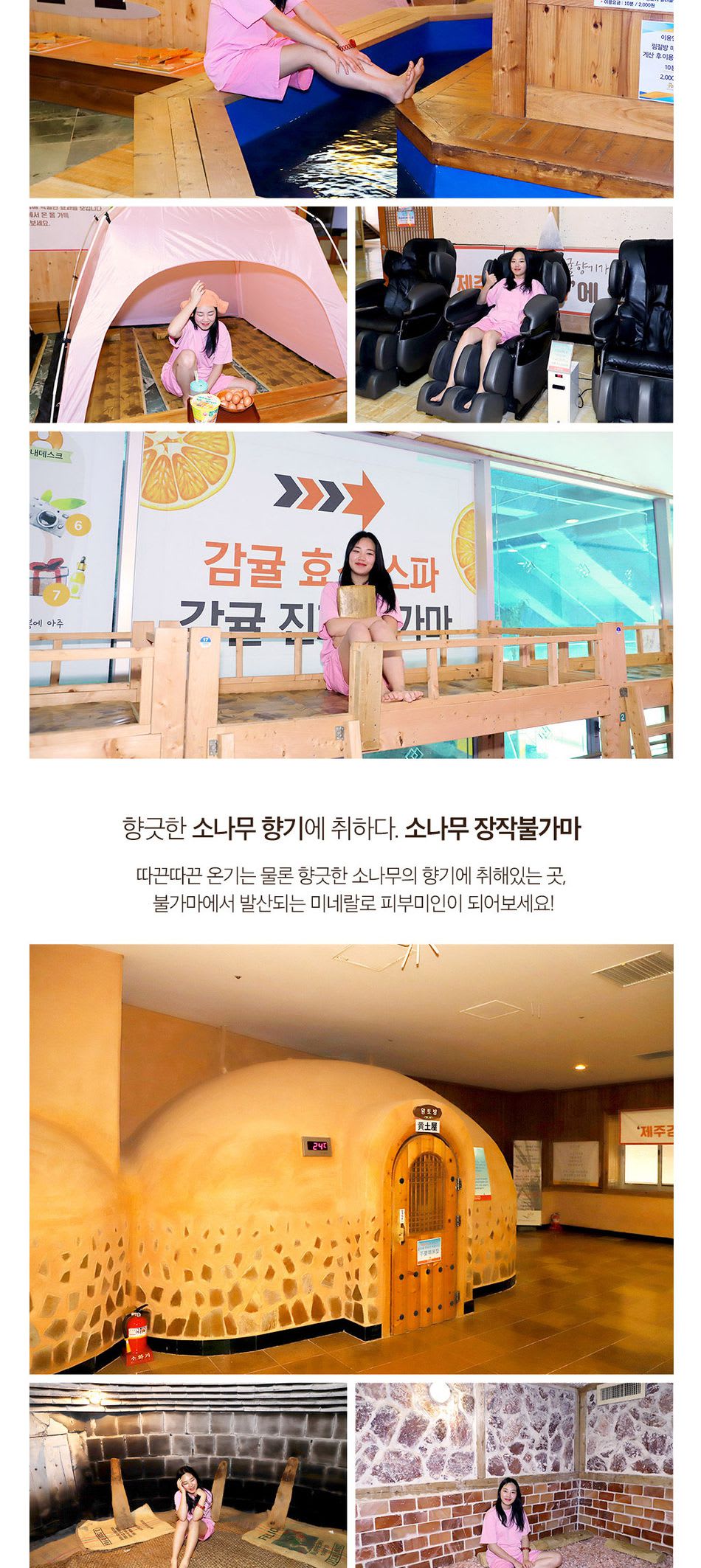 건강에 좋은 광물질이 다량 함유된 제주 해수 사우나에서 쌓인 피로를 풀어보세요.