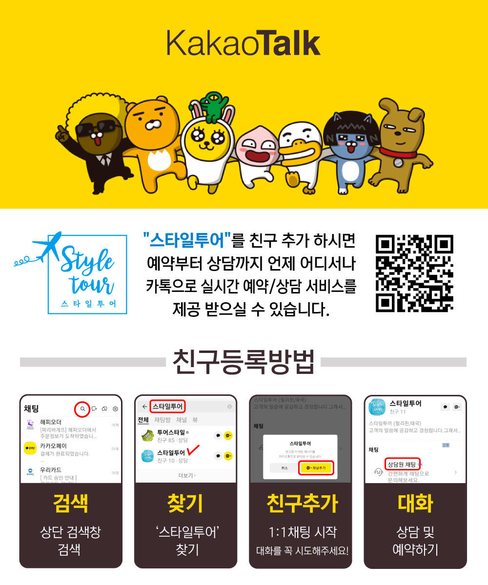・예약후 반드시 카카오톡채널 '스타일투어'로 대화를 신청해주세요. (꼭 대화를 걸어주셔야 합니다.)