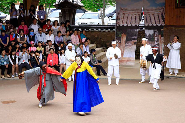 両班と庶民との関係をコミカルに風刺した仮面劇公演「河回別神仮面劇」をご覧いただけます。