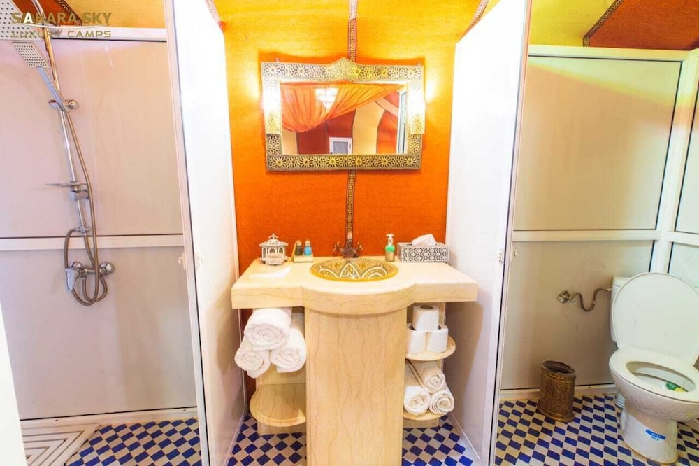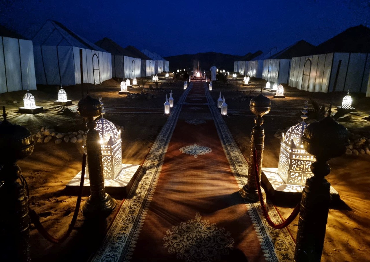 ・ 황금빛 에르그 체비 사구를 낙타를 타고 건너 럭셔리한 사막 캠프에서 잊지 못할 밤을 보내세요.