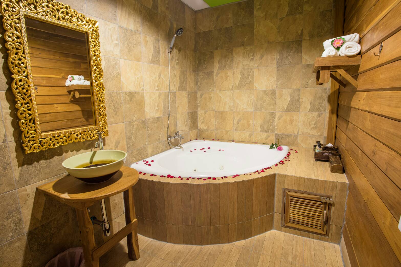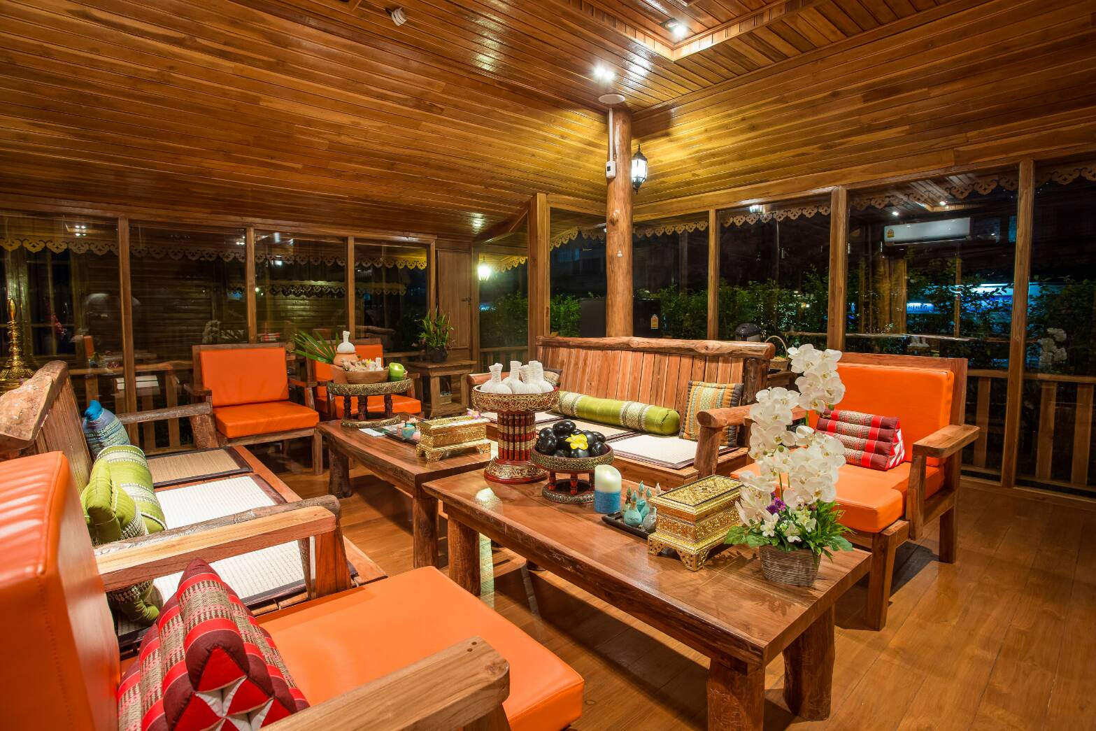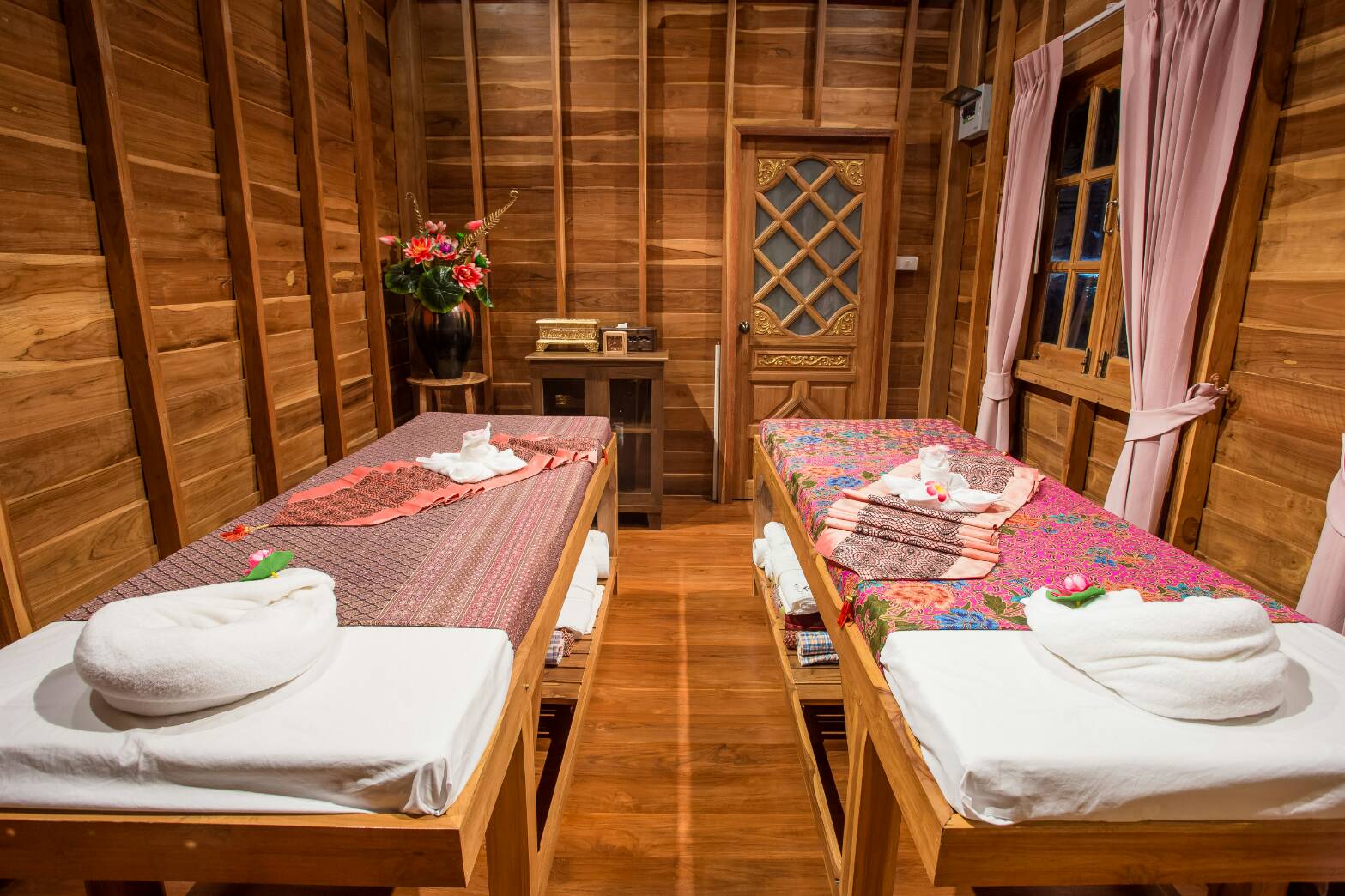 ・친환경 소재인 티크 나무로 만들어진 방갈로 인테리어의 고급 마사지 숍이예요.