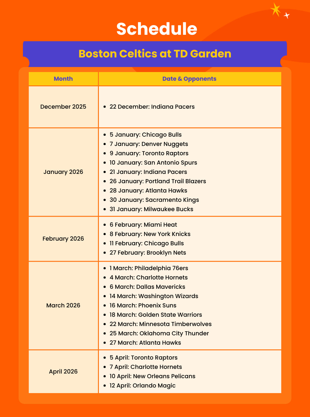 ・ 다양한 NBA 경기 날짜 중에서 선택하여 보스턴 셀틱스와 최고의 NBA 팀 간의 경기를 관람하세요.