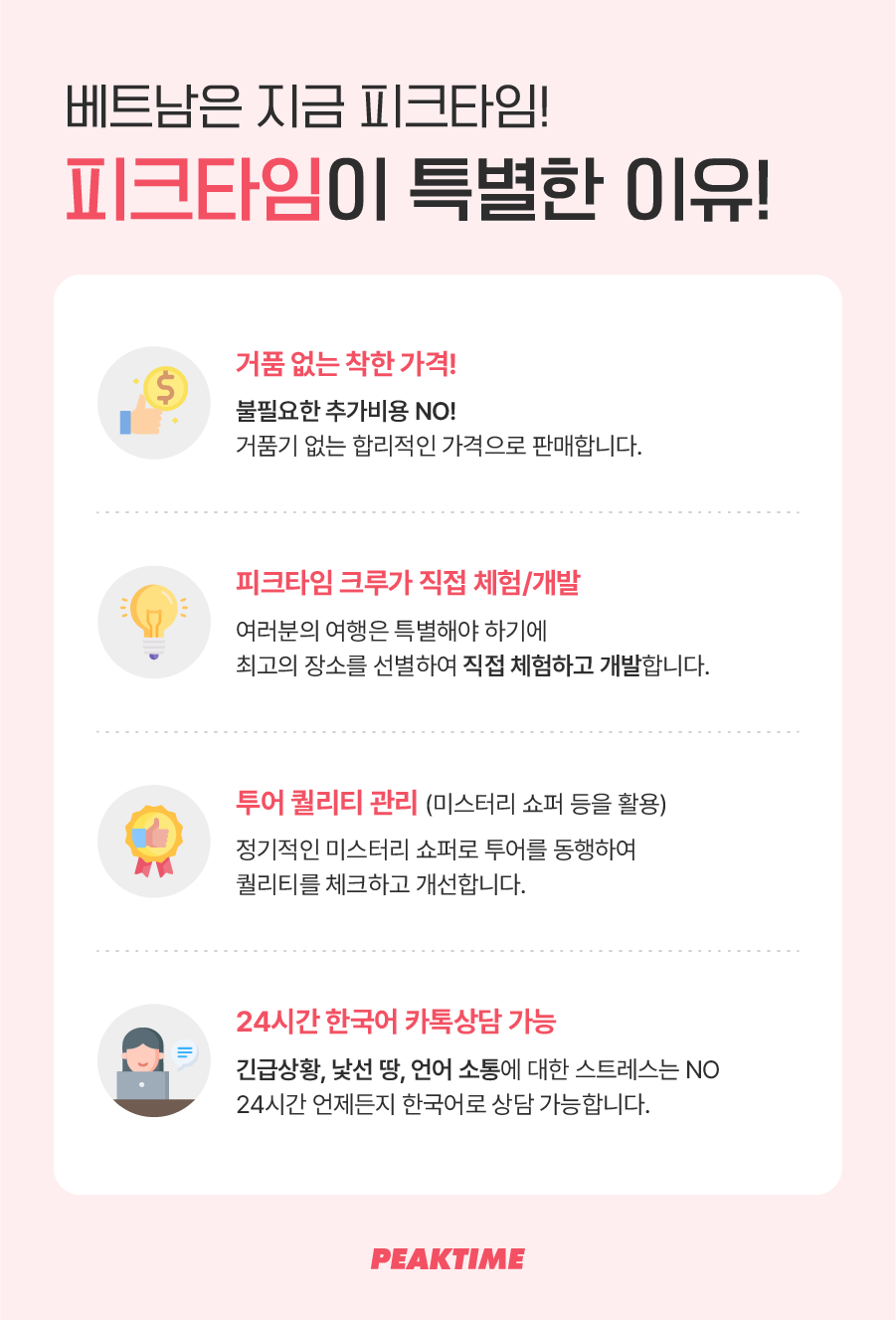 - 기타 추가 문의는 '피크타임 푸꾸옥' 채널로 문의주세요