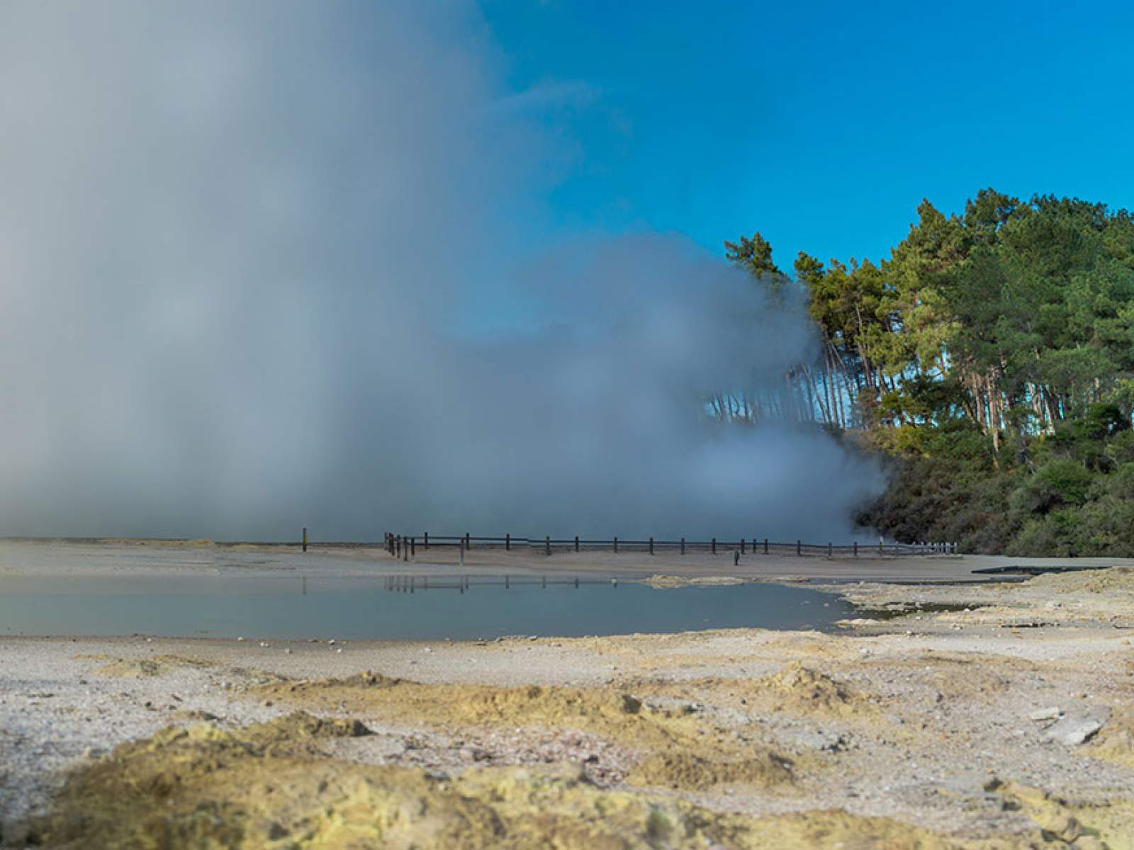 첫 번째 목적지는 뉴질랜드의 지열 원더랜드인 와이오타푸입니다. 레이디 녹스 간헐천이 최대 20m까지 솟아오르는 장관을 목격하고, 다채로운 화산 지형에서 부글거리는 머드 풀과 김이 나는 분화구를 탐험해보세요.