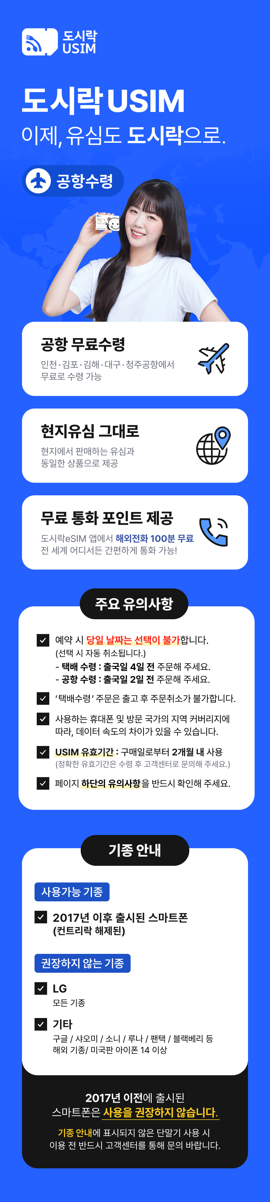 ・① 단말기 컨트리락 미해지, 휴대폰 보호서비스 가입, 데이터로밍 차단 시 해외유심 사용이 어렵습니다.