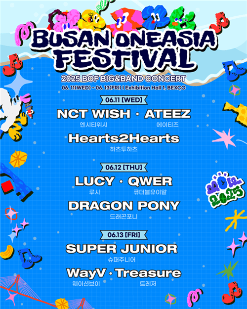 ・今年で9回目を向かう2025 BOFは釜山代表のK-POPコンサートです。1次ラインアップでは超人気アイドルグループのNCT WISH、WayVが決まりました。釜山を代表するK-POPコンサート「2025釜山ワンアジアフェスティバル(BOF)」をご満喫下さい♪♪