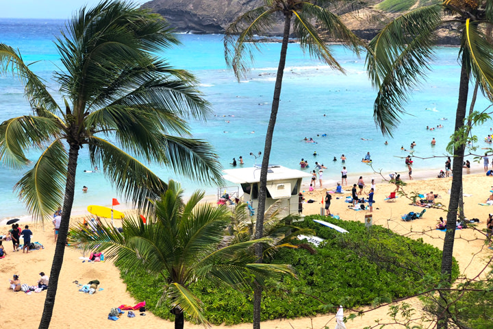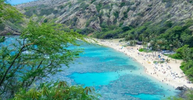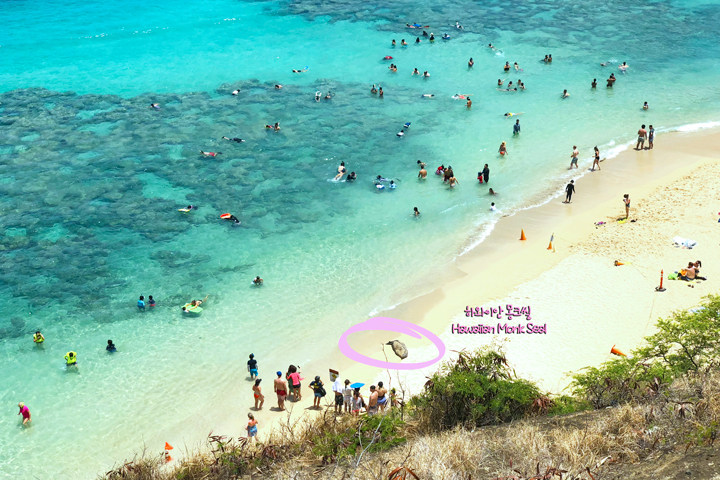 ・ 하와이에서 아름다운 해변 중 하나로 손꼽히는 하나우마베이는 오아후섬 동남쪽에 위치한 화산 분화구 속 천연 해양 보호구역입니다.