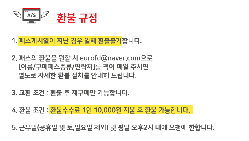 ・📌 패스 발권 후 환불 시 환불 수수료 10,000원이 발생합니다. 상품 페이지 환불 규정과 다르게 특별 약관이 적용되오니 구매 시 참고 부탁드립니다.