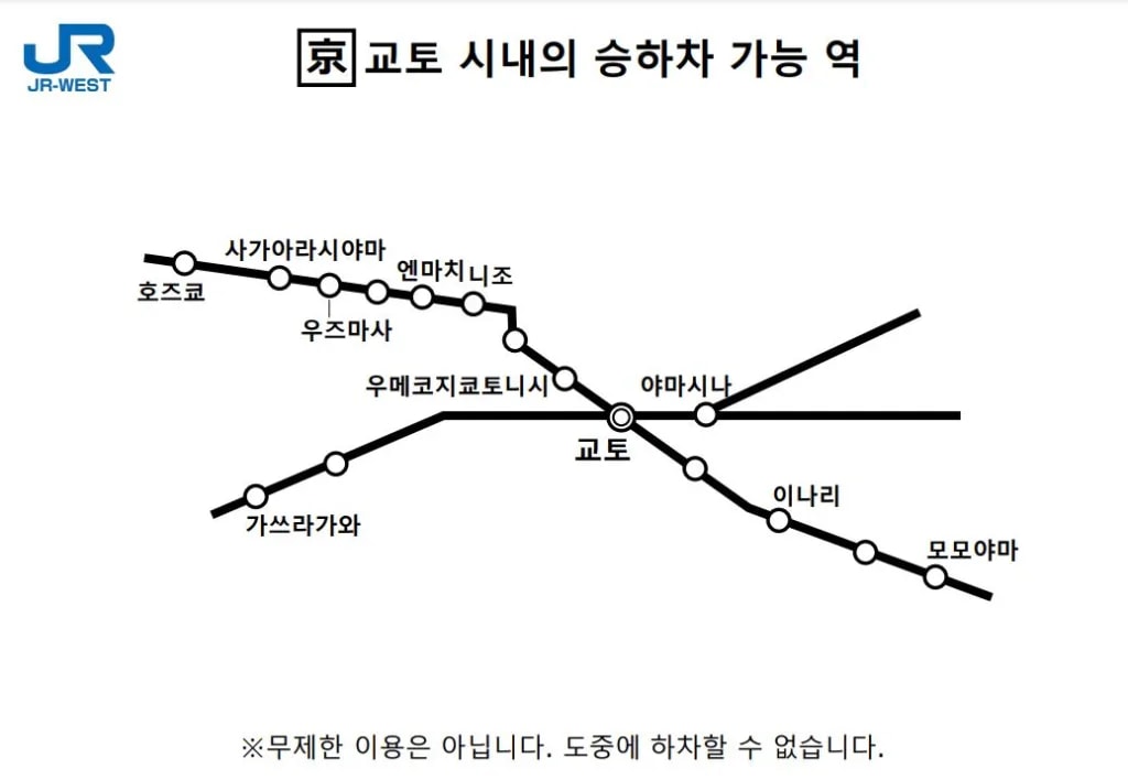 ・ ■ 유의사항 꼭 알아두세요!- 해당 상품은 본인만 유효합니다.- 분실, 도난의 경우에도 재발행되지 않습니다.- 본 티켓은 '단기체제'에 해당하는 체류자격을 보유하고 있는 분만 사용할 수 있습니다.- 유학 비자, 취업 비자 소지자는 사용할 수 없으며, 일본 국적을 가진 분도 사용할 수 없습니다.- 하단의 안내 되는 추가 승차권이 필요한 경우, 탑승 전 JR 서일본 역에서 미리 구매하여야 합니다.- 전차량 지정석화 (사전에 지정석 예약 반드시 필요)- 유효한 지역 내에서 운행되는 호쿠리쿠 신칸센 (가나자와↔도야마)의 그란클래스 이용 시 별도로 그란클래스권이 필요합니다.- 특급 호쿠리쿠 편도 티켓 및 특급 호쿠리쿠 편도 티켓를 제외한 특급열차의 특실 이용 시 특실 탑승권과 별도의 특급권이 필요합니다.- 특급 호쿠리쿠 편도 티켓을 제외한 특급열차의 일반실 이용 시 별도의 특급권이 필요합니다.- 유효한 지역 내에서 운행되는 신 쾌속, 쾌속, 보통 열차의 특실 이용 시 별도로 보통 열차용 특실권 (그린권)이 필요합니다.- 유효한 지역 내에서 운행되는 신 쾌속, 쾌속, 보통 열차의 일반실의 지정석 이용 시 별도로 좌석 지정권이 필요합니다.- 정리권 및 라이너 권이 필요한 차량 및 열차를 이용하시는 경우에는 별도 요금이 필요합니다.- 유료 좌석 서비스 신 쾌속 ‘A 시트’ 예약 및 이용 시 별도 요금이 필요합니다.- 이 티켓은 자동 개찰구를 이용하실 수 있습니다. 자동 개찰구를 통과하지 못한 경우 유인 개찰구를 이용해 주세요.- 설정 구간을 한 장당 편도 한 번만 이용하실 수 있습니다.- 교토 시내에 있는 모든 JR역을 이용할 수 있습니다.- 도중하차 시 잔여 구간은 무효가 되므로 주의하여 주십시오.- 자세한 티켓 교환방법은 다음을 참고해 주세요. https://www.westjr.co.jp/global/kr/ticket/receive/ - 창구에서 교환하시는 경우, 희망하시는 열차번호를 알려주세요.- 희망하는 열차가 만석인 경우, 지정석을 이용하지 못할 수도 있습니다. 지정석으로 이용하지 못하셨더라도, 지정석과 자유석의 차액을 환불받으실 수 없습니다.- 자동발권기에 결함이 있거나 또는 여권에 IC칩 부착이 없는 경우 지정된 역의 미도리노마도구치로 가서 실물티켓을 교환 하십시오.- 예약 확정 후 '내 여행' e-티켓(바우처)에서 만나는 시간과 장소를 반드시 재확인해주세요.- 상품 페이지와 바우처 상의 정보가 다를 경우, 반드시 바우처 상의 정보를 확인 부탁드립니다.