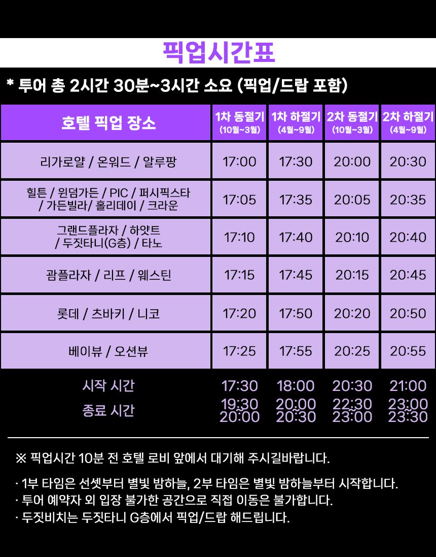 ※ 투어 시간은 당일 현장 교통 상황 등에 따라 조정될 수 있습니다.