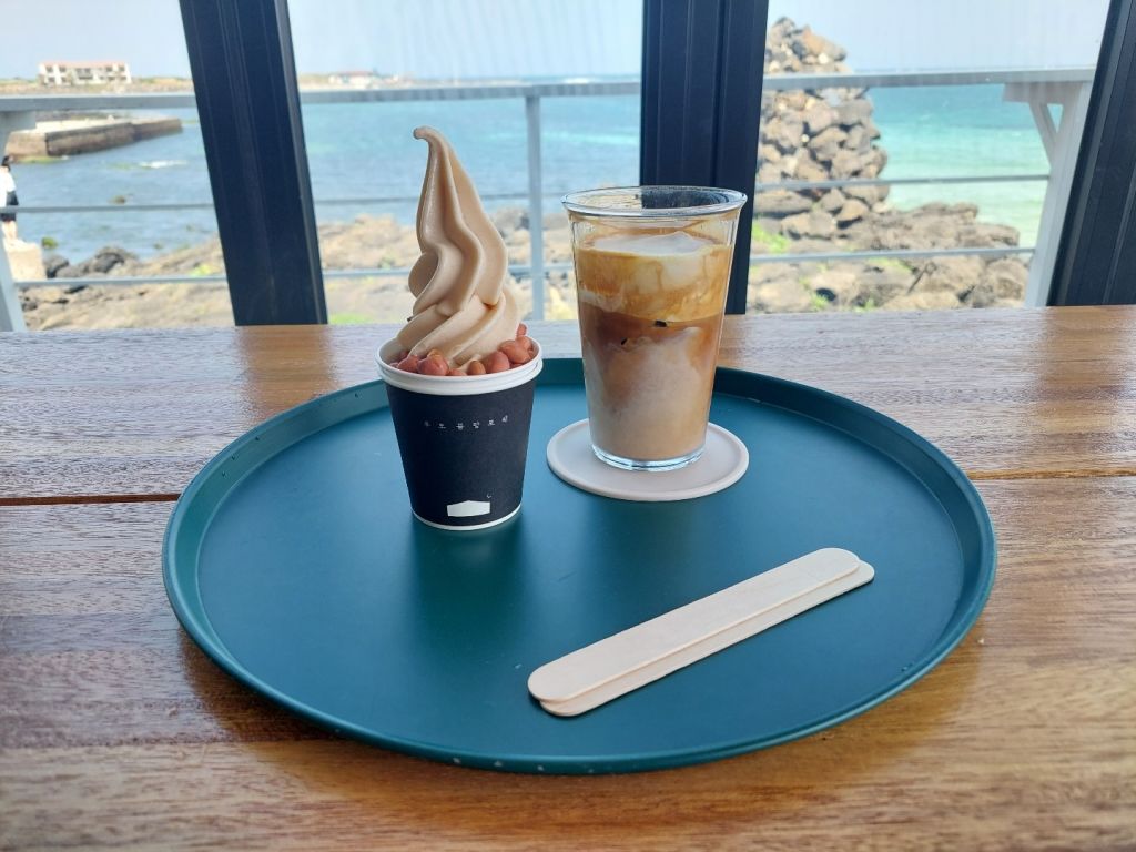 바다풍경 너무 좋고 땅콩아이스크림 맛있습니다! 땅콩크림라떼도 나쁘지 않아요!