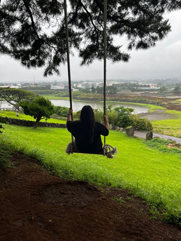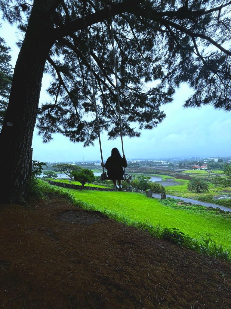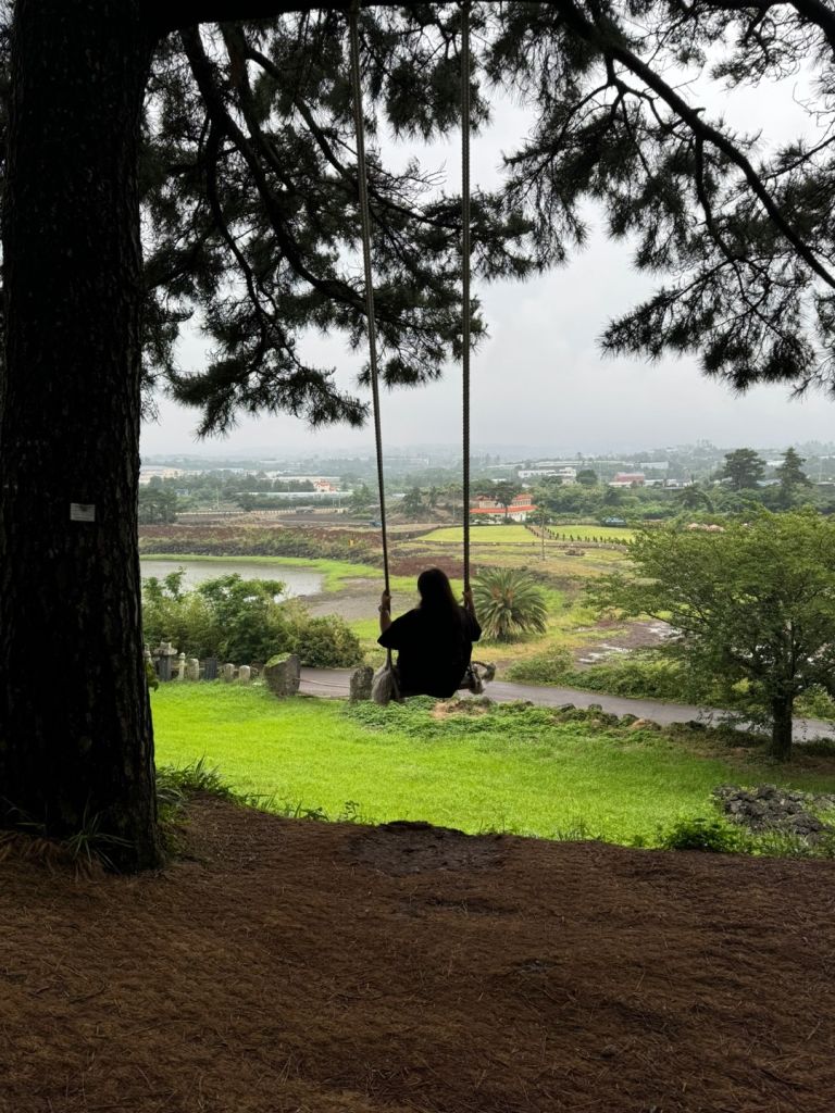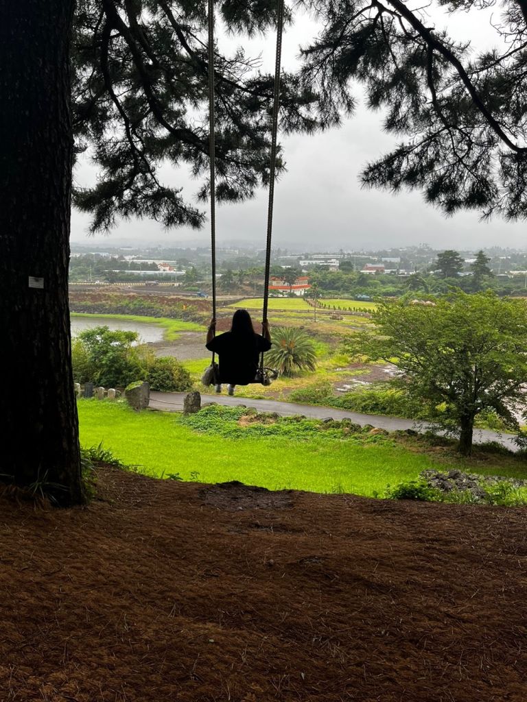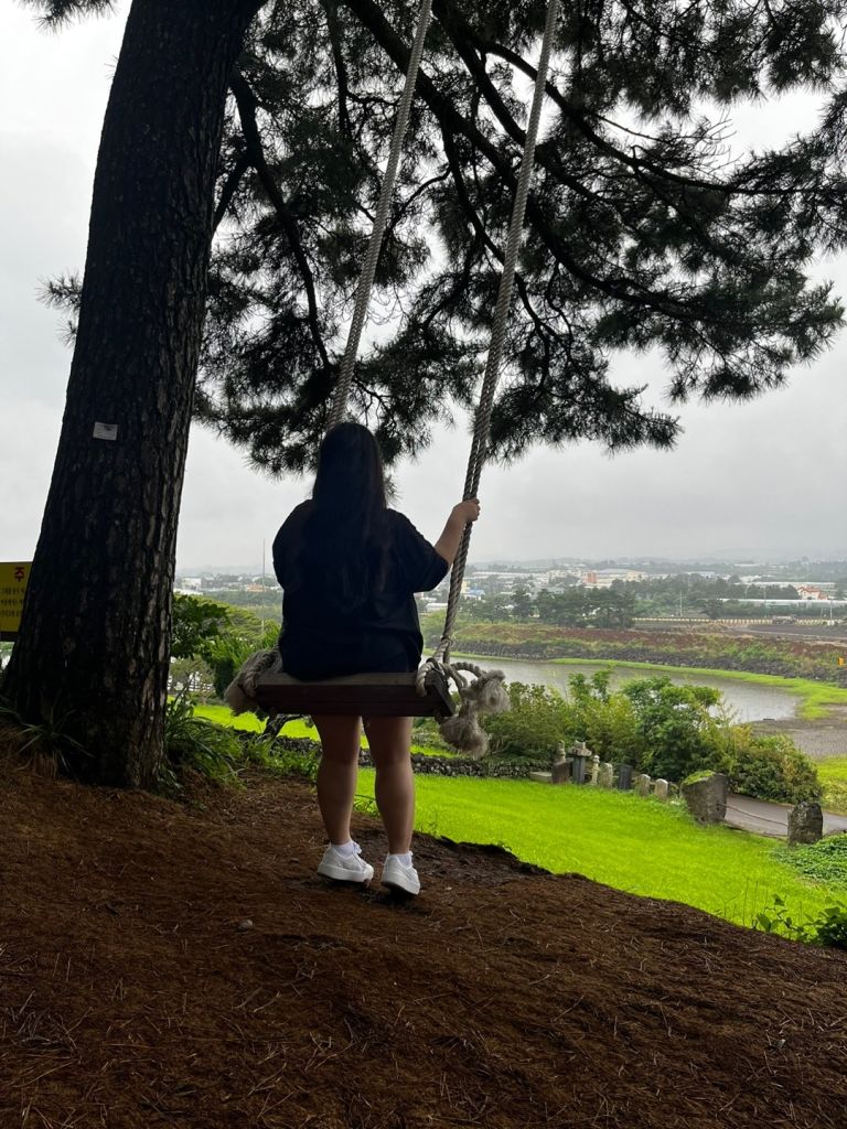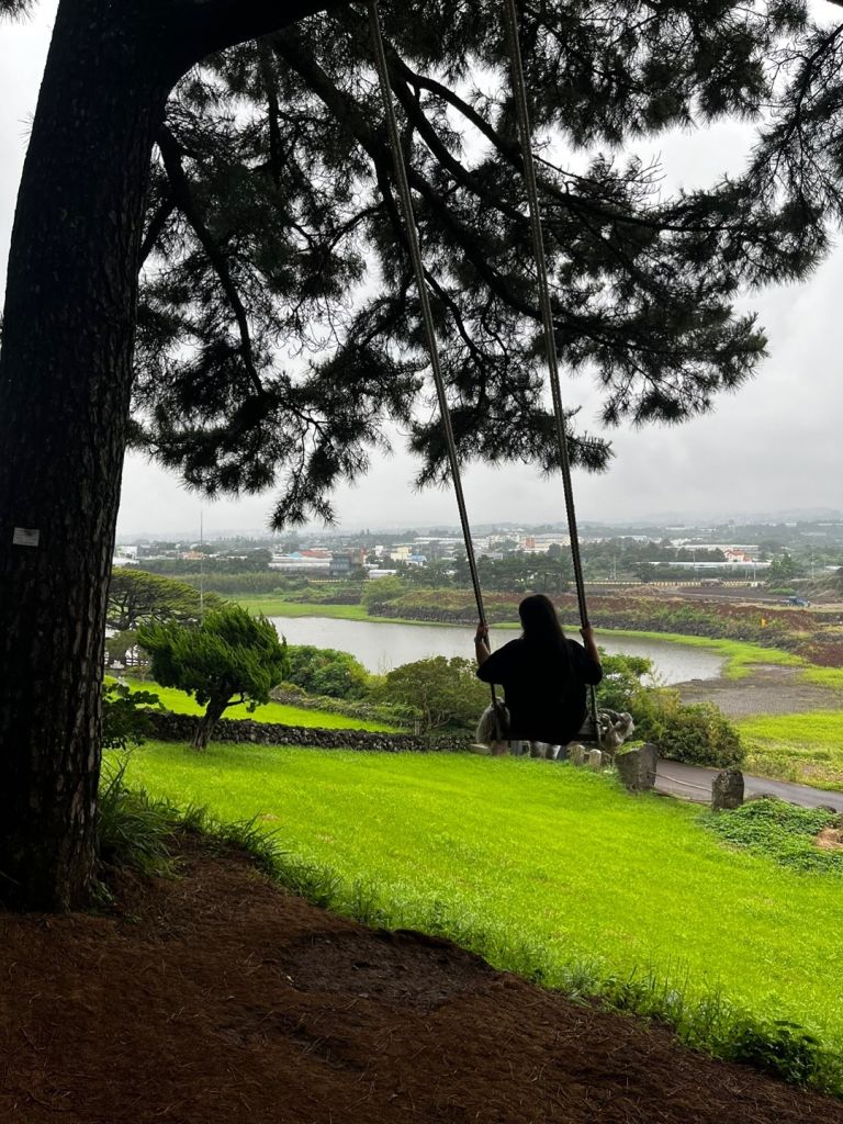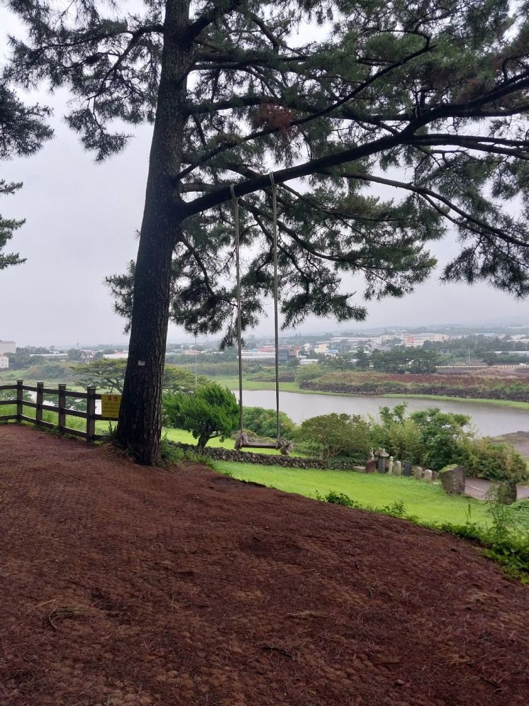 오름입구에서 3분정도 걸어올라가가서오른편으로 꺽으면 바로 큰나무와 그네가 보여요