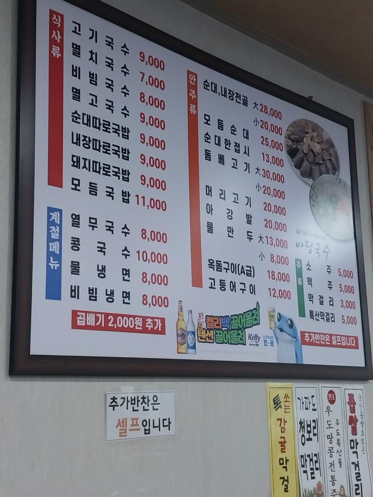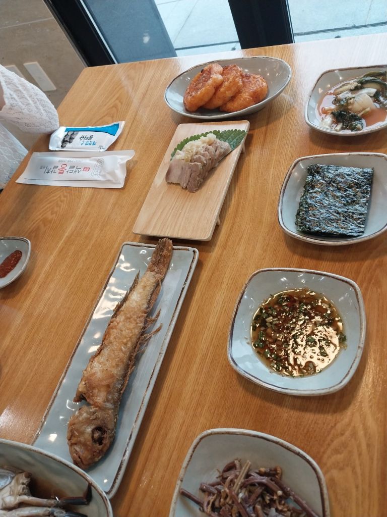 고기국수 ->갈치조림 -> 녹차아이스크림 -> 가재빵 ->고기만두 ->회+딱새우