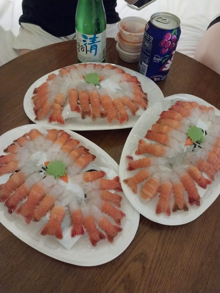 숙소에와서 딱새우를 먹는데 너무 맛있었습니다 마감세일이었지만 굉장히 신선했고 맛있었어요!