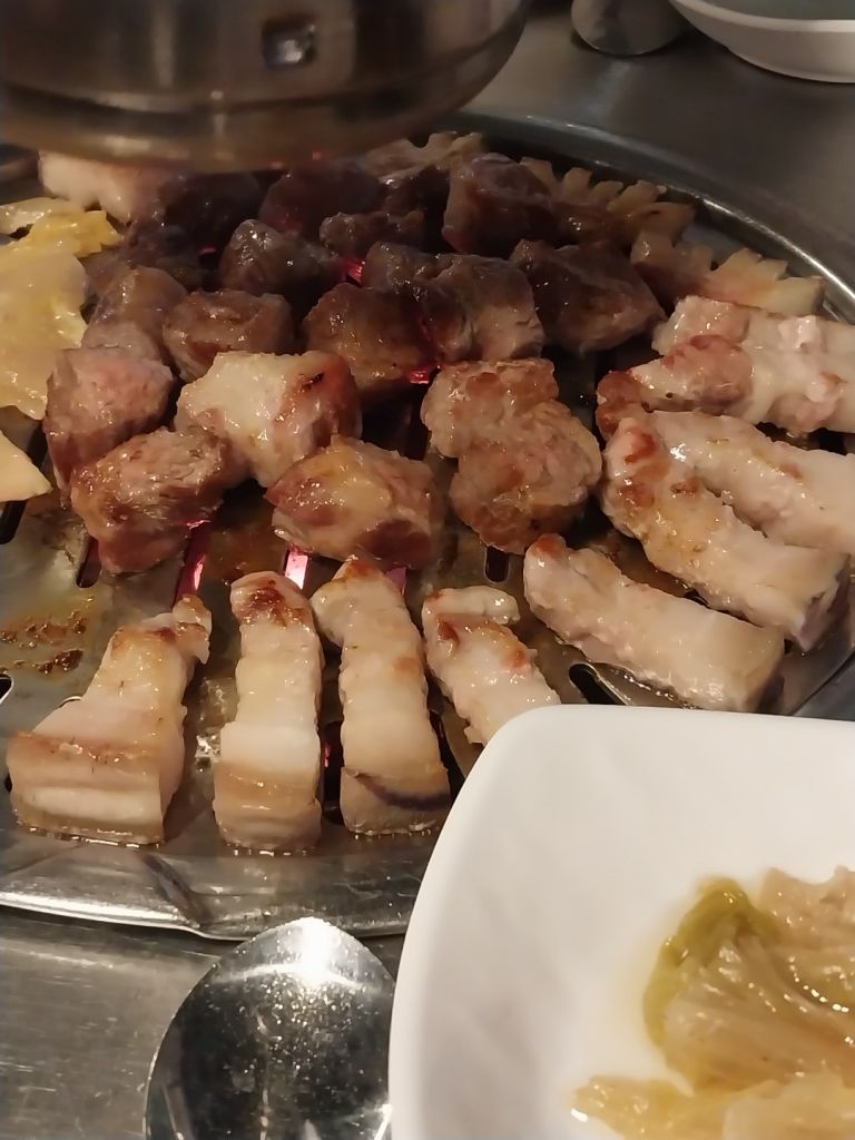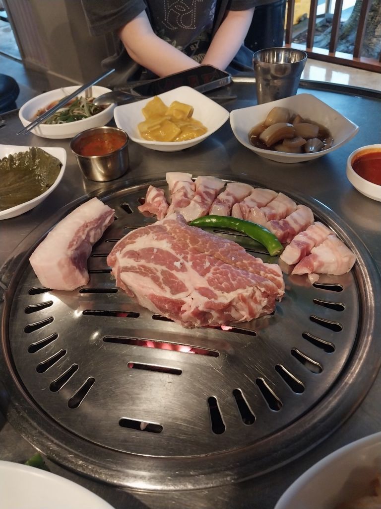 김치가 특이했는데요 묵은지는 물에 한번씻어서 주신거같은 느낌이었어요 그냥 먹었을때는 좀 신맛이있었는데 구워먹으니까 진짜 너무 맛있었어요!!👍 계속 리필해서 구워먹었답니다