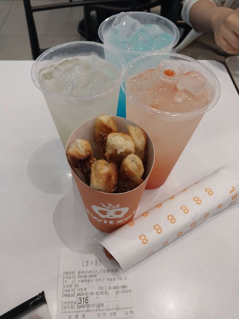 들아가서 간식으로 프레즐 먹어주고 기다리고있는데