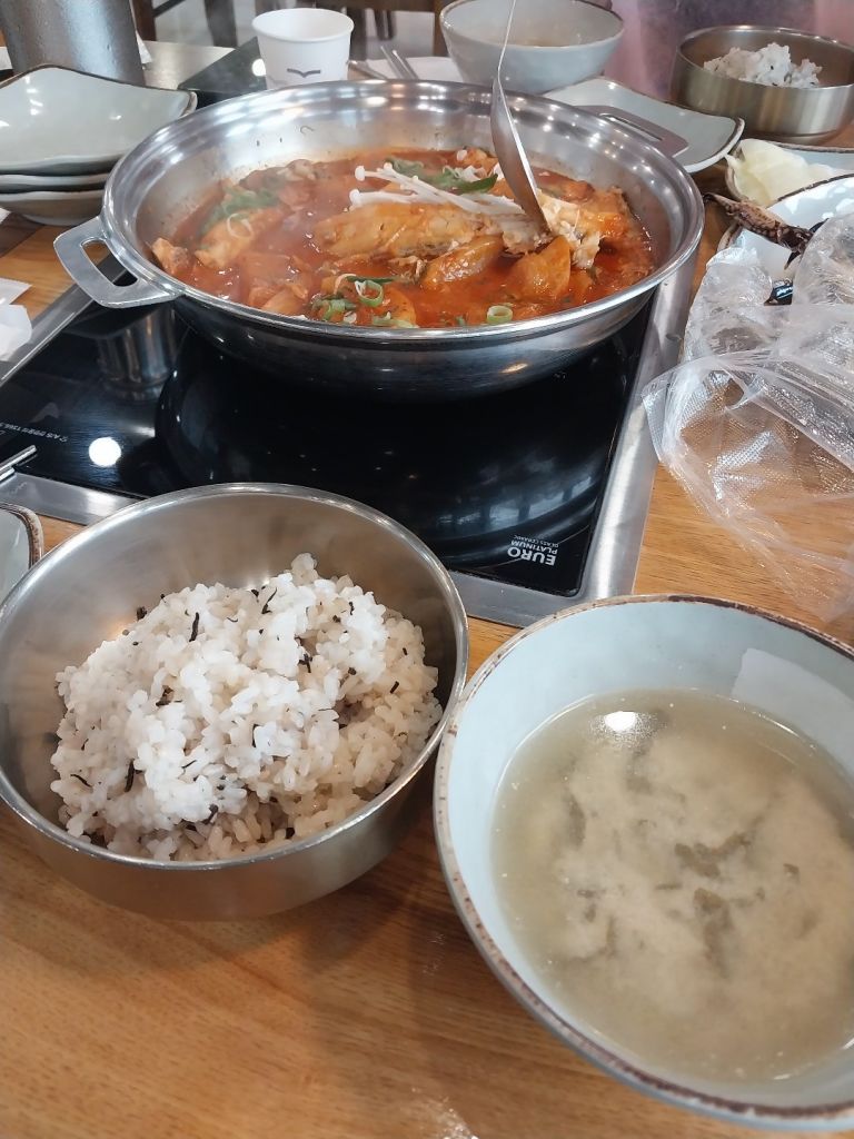 갈치조림은 좀 시간이 걸렸어요 나오자마자 바로 먹어도 된다고 하시더라고요 한입 먹어봤는데 양념이 간도 딱좋고 너무 맛있었어요! 무도 양념을 잔뜩 머금어서 맛있었습니다