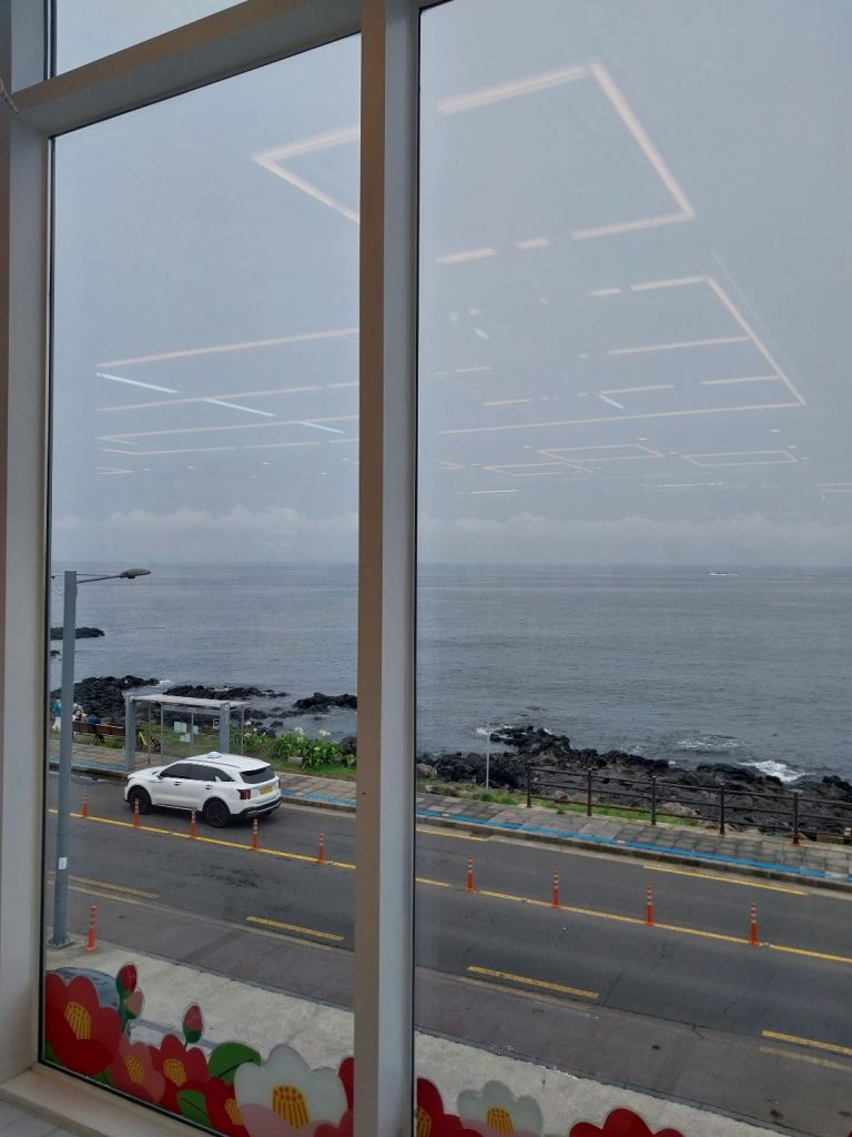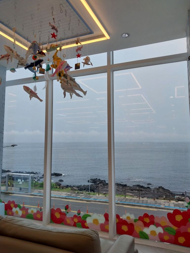 2층 통창문에서 바라보는 바다가 정말이뻐요 통창앞에는 휴식이 가능한 의자와 쇼파도 있어서 한참을 멍하니 봤답니다