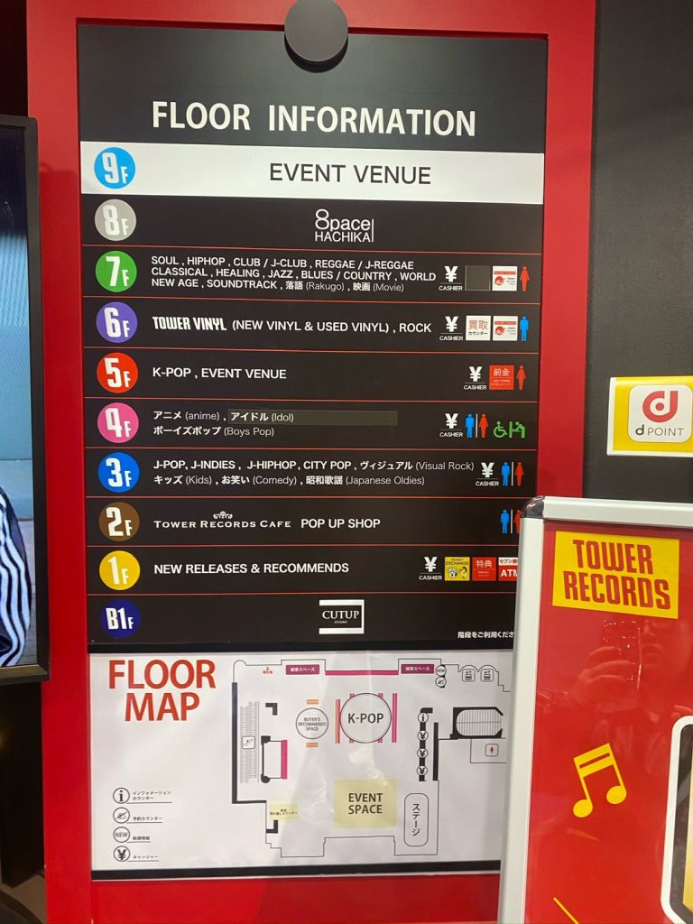 9층으로 된 타워레코드. LP도 많이 팔고 있고, J팝 좋아하는 나는 구경하는 것만으로도 재미있었다.