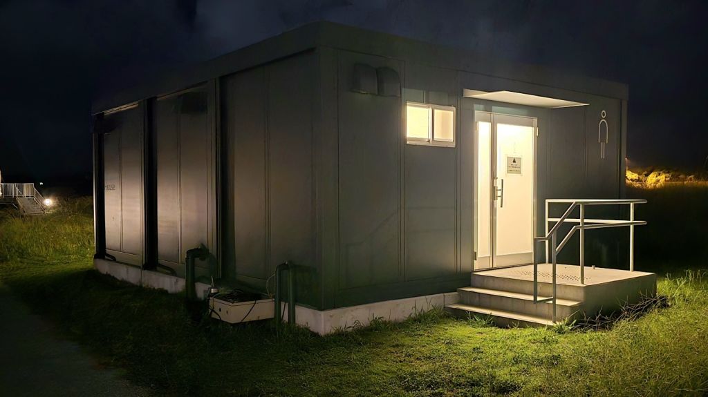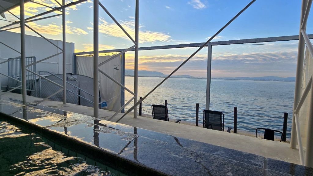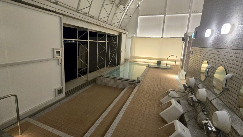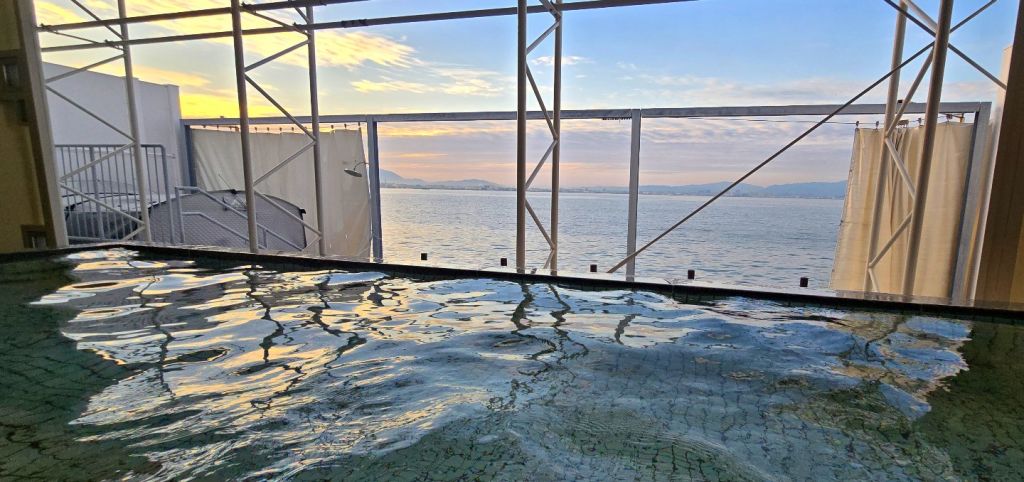 바다 쪽에는 공용 대형 욕탕 및 샤워실이 있는데, 마찬가지로 시설이 깔끔하고 야외가 개방되어 있어 바다를 바라보면서 목욕을 즐길 수 있습니다. 저녁 7시쯤 갔는데 아무도 없더라고요. 혼자 이런 풍경을 독점할 수 있는 게 너무 좋았습니다.