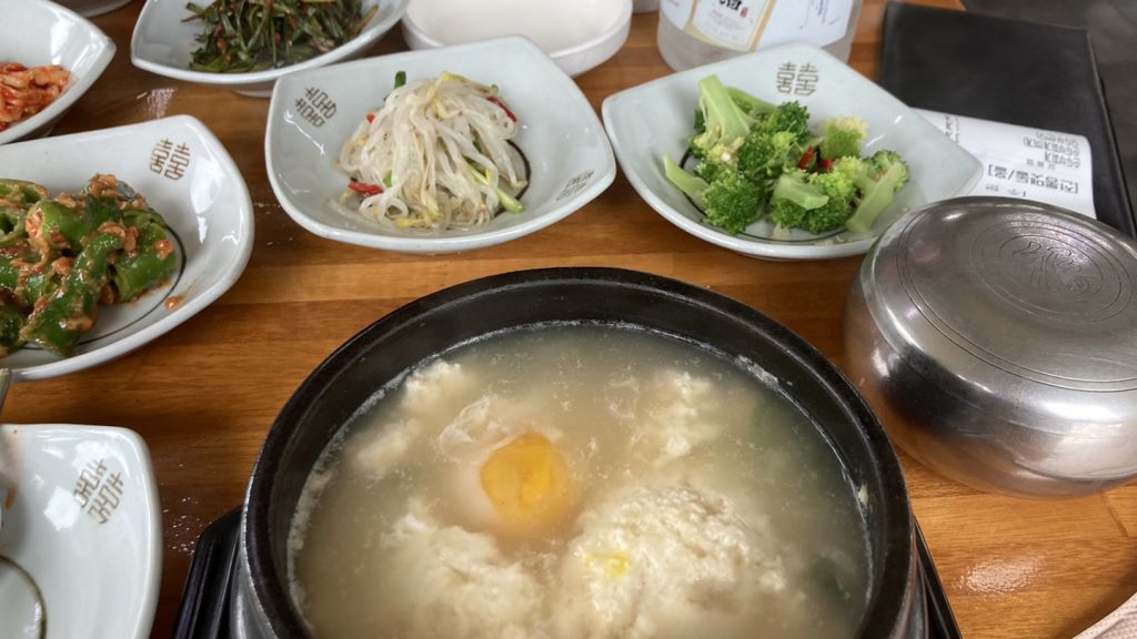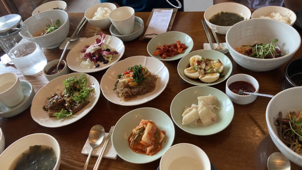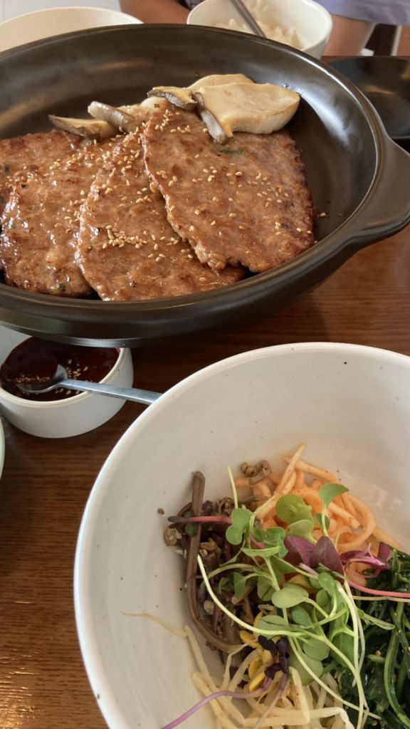 어제 가려던 식당에 다시 갔지만 웨이팅이 어제보다 길었던 관계로.. 또 근처에 있던 이곳에 도착! 저희를 마지막으로 웨이팅이 생기기 시작해서.. 정말 타이밍 딱 맞춰 잘 갔다는🤤 동생이랑 밑반찬 계란가지고 싸웠어요ㅋㅋ 메뉴는 떡갈비밖에 없어요 그래도 맛있음ㅎㅎ 비빔밥도 주고.. 반찬들도 다 맛있어요 가게도 전체적으로 예뻐서 넘 좋았어요🌿🫧