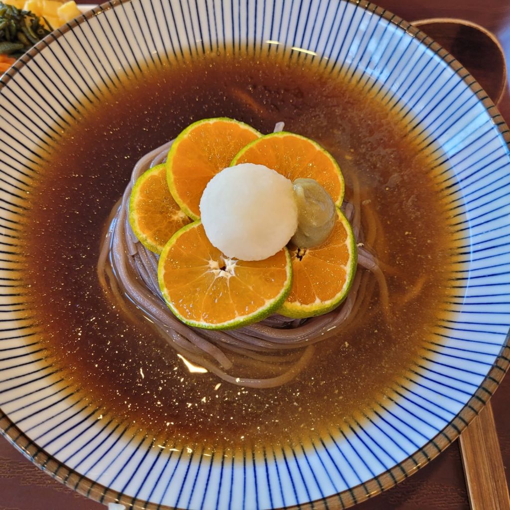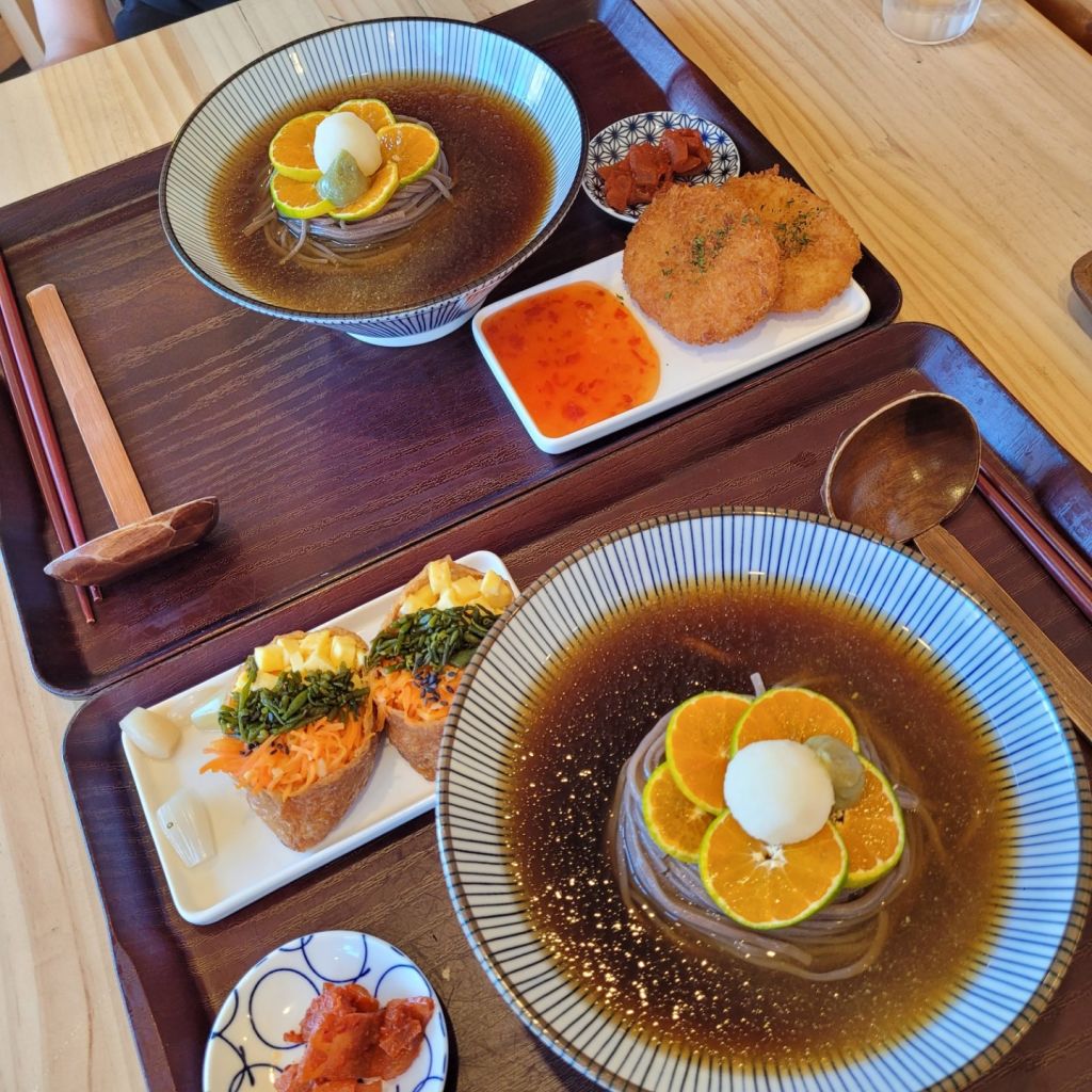 의외로 귤이랑 소바랑 어울렸고 톳유부초밥은 너무 커서 먹기 힘들었다