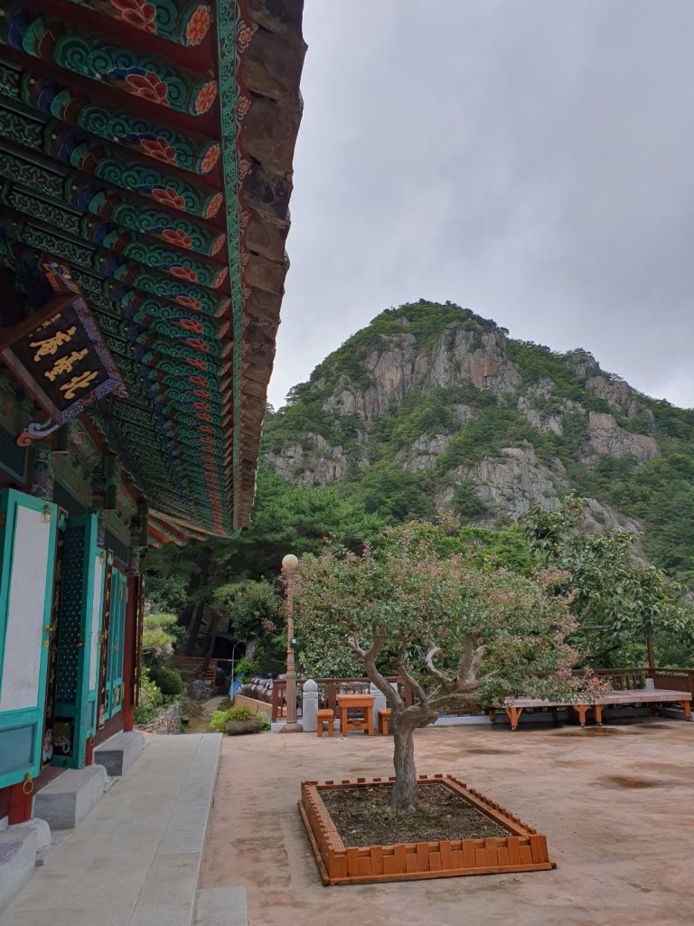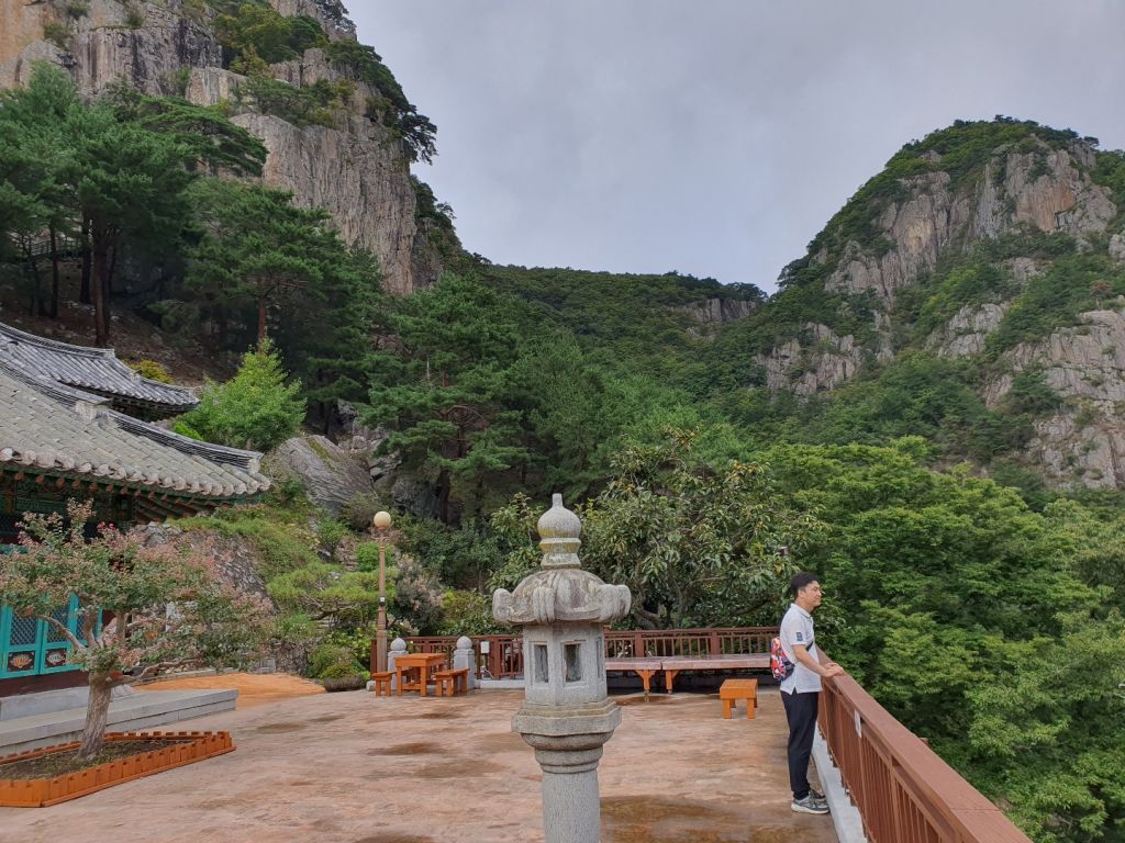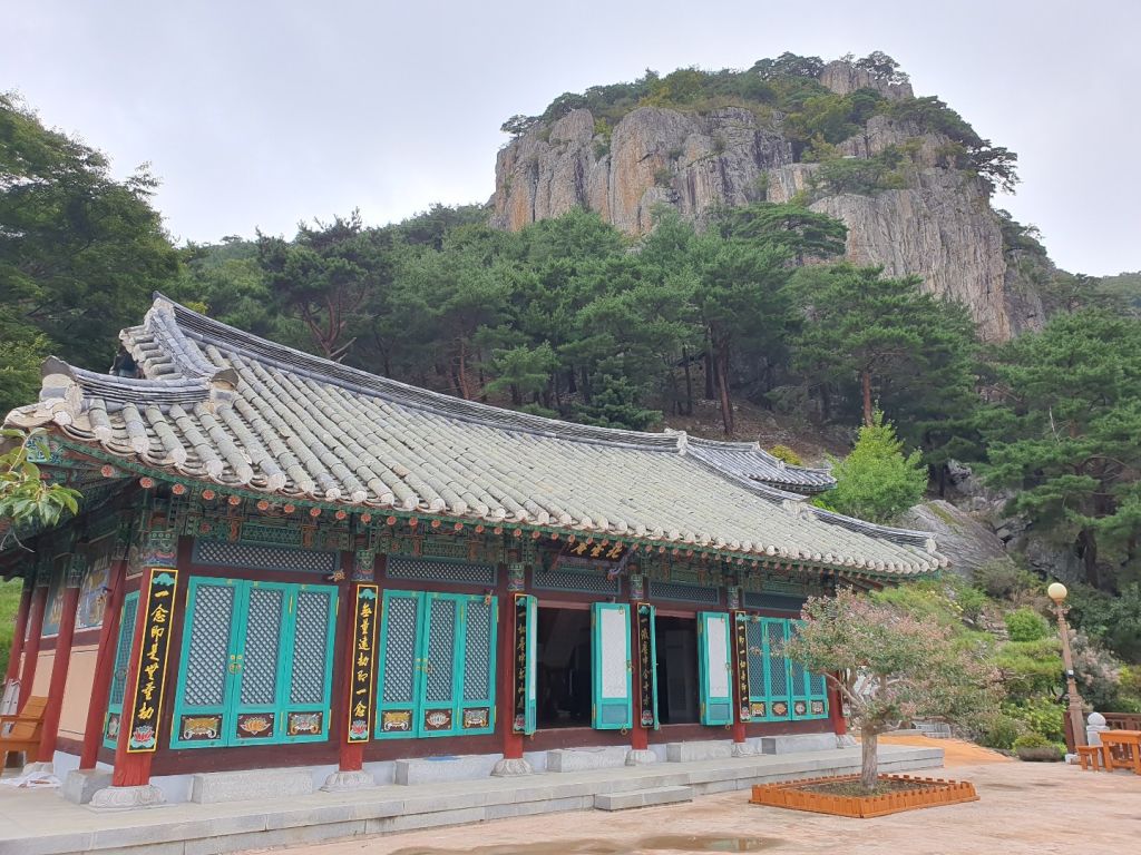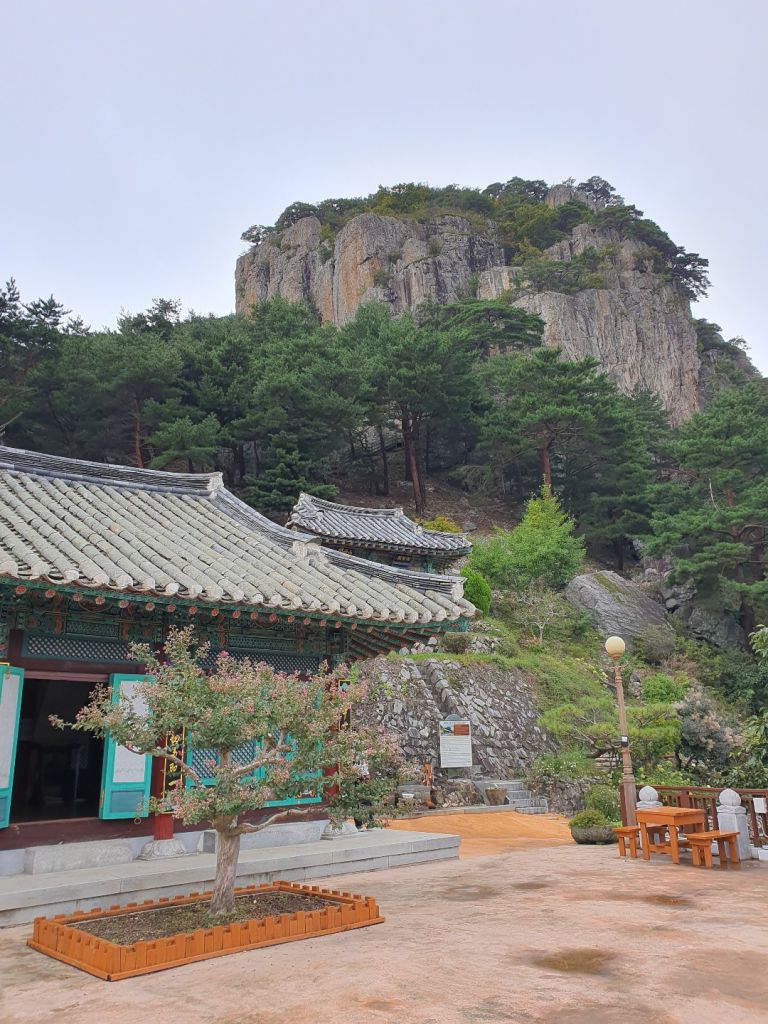 산사의 고즈넉함과 우뚝솟은 바위봉우리 풍경이 멋지다