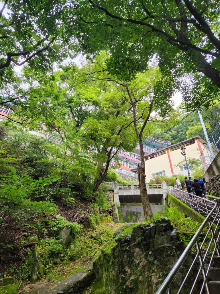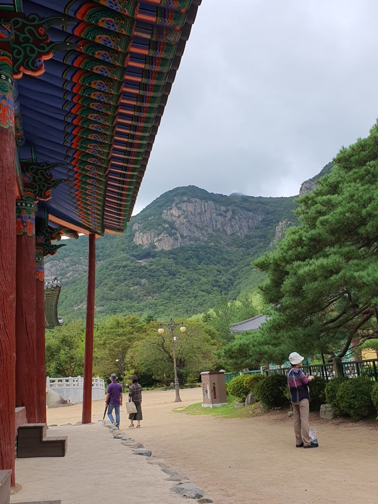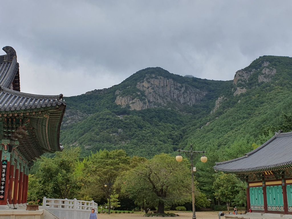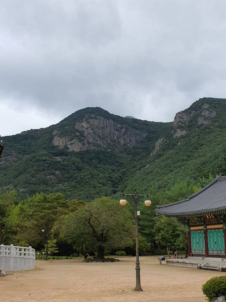 산사의 고즈넉함과 우뚝솟은 바위봉우리 풍경이 멋지다