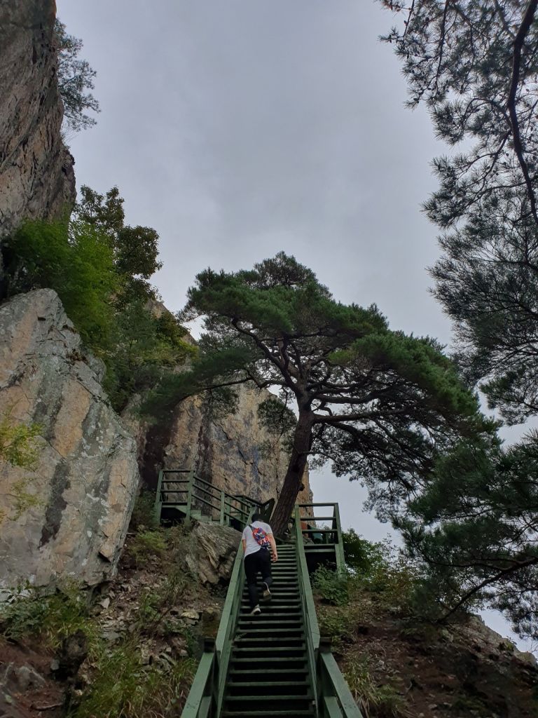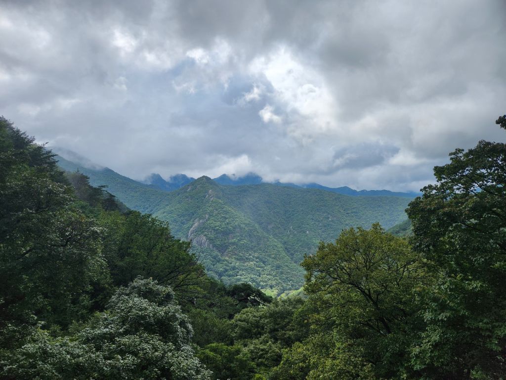 저멀리 산위에 오늘 우리가 갈 북대암과 우뚝솟은 바위들이 보인다