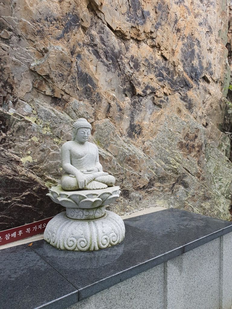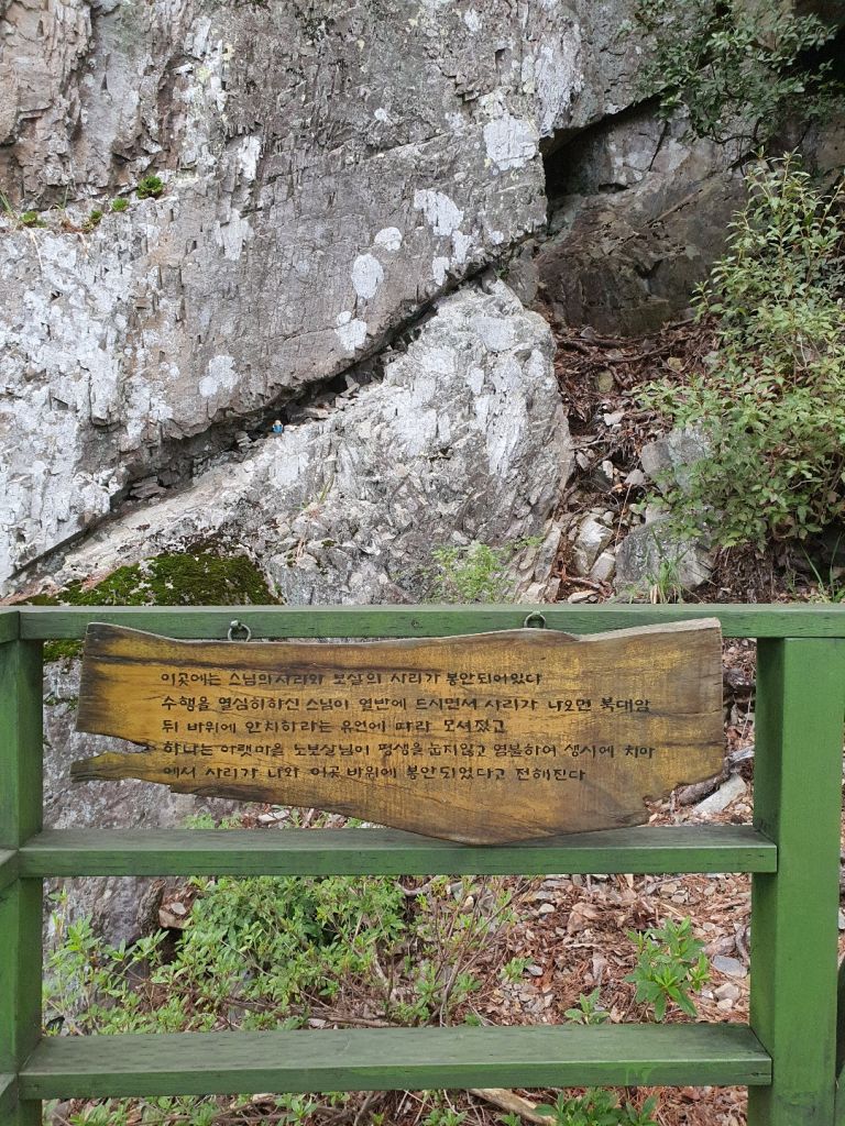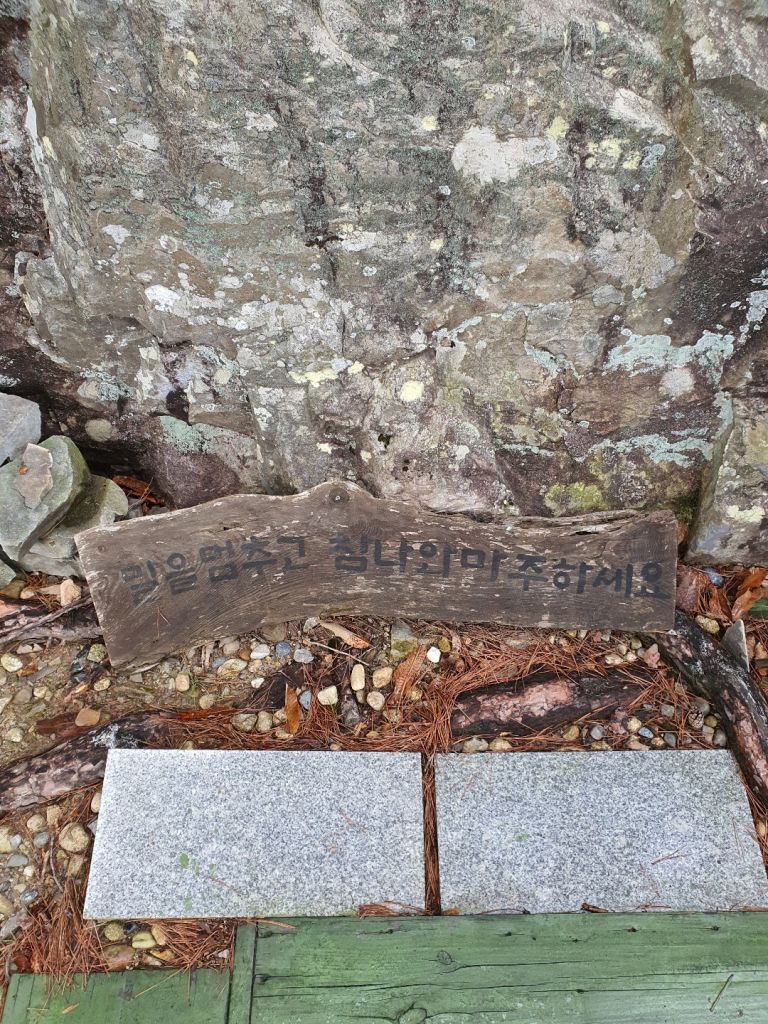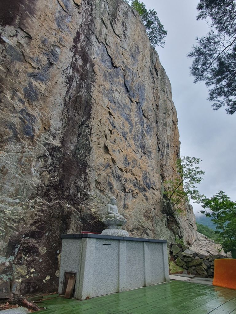 뒤로돌아 올라가면 소나무가있는 바위아래 석상 기도처가 있다