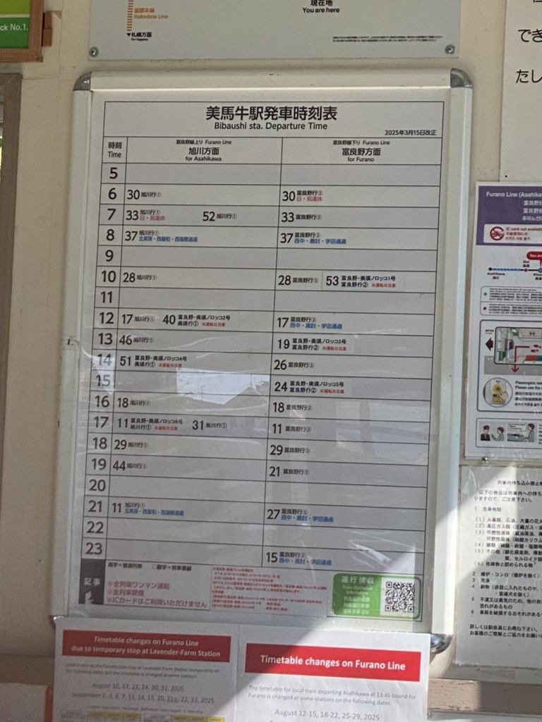 비바우시에서 후라노, 비에이 갈때 시간표 잘 확인하세요