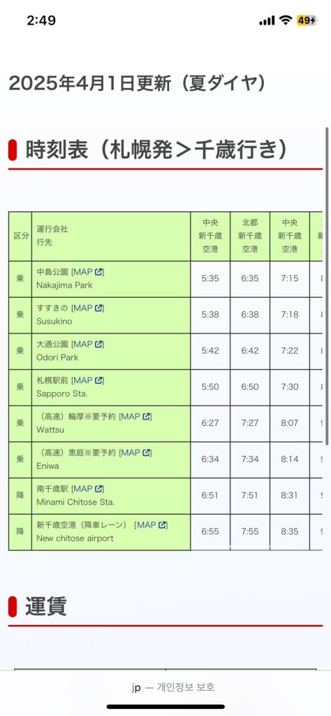 3-4번째는 호텔 옆 나카지마 공원에서 신치토세 공항으로 가는 버스 시간표 및 요금입니다 가깝고 좋더라고요 굳이 삿포로역, 스스키노까지 안 가도 됩니다! 예약 필요없어요 그냥 가서 신용카드로 찍어서 탑니다