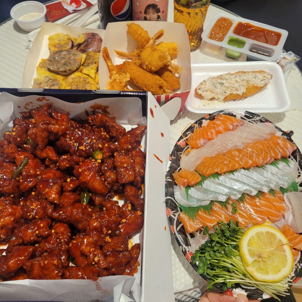 닭강정은 많이 매콤하고 내 타입이 아니라 그런가 손이 잘 가지 않았고 회만 먹었다 ㅋㅋㅋ
