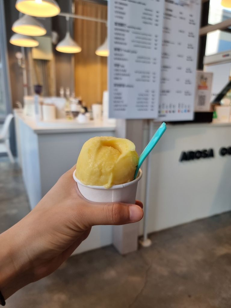 더운날 잠깐 앉아있기 좋았던 카페. 1인 1메뉴 자리 착석 가능. 젤라또는 생각보다 진했고 블랙티는 역시나 시원하게 맛있었다.