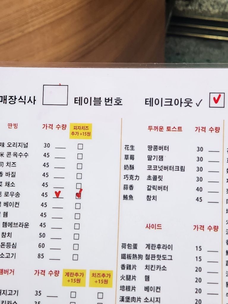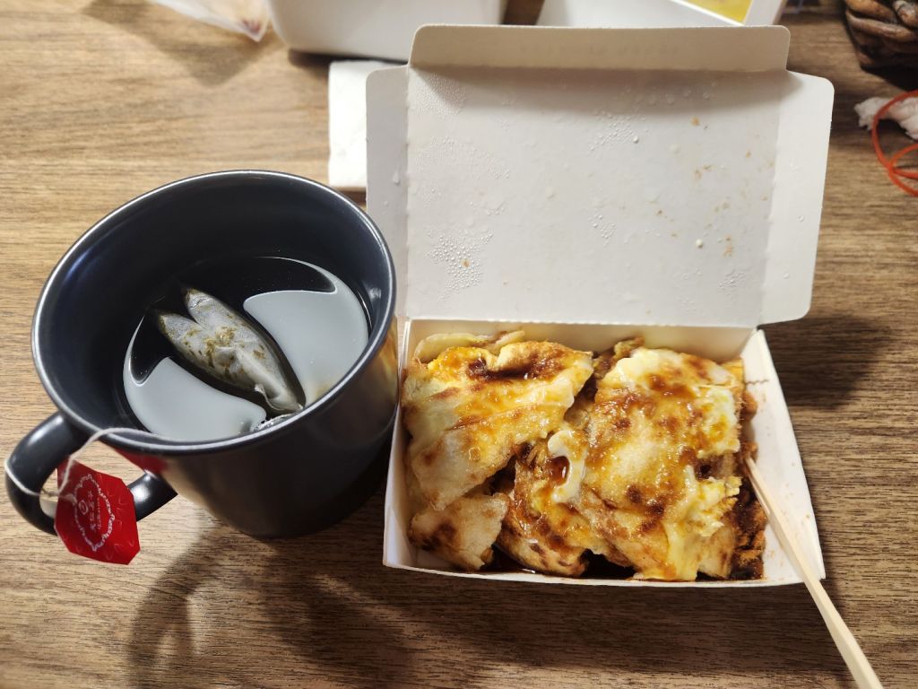대만의 첫 아침식사. 조식당 중에 숙소에서 가까운 곳으로 찾았는데 나름 한국인들에게 유명한 곳인지 한국어 메뉴가 있었다. 내가 영어를 쓰자 바로 한국인인지 아시고 한국말 인사해주시는게 이미 많이 겪어보신듯ㅎㅎ 딴삥은 대만식 오믈렛이고 러우송이라고 돼지육포가루랑 치즈 추가해서 먹었는데 짭쪼롬하니 맛있었다.