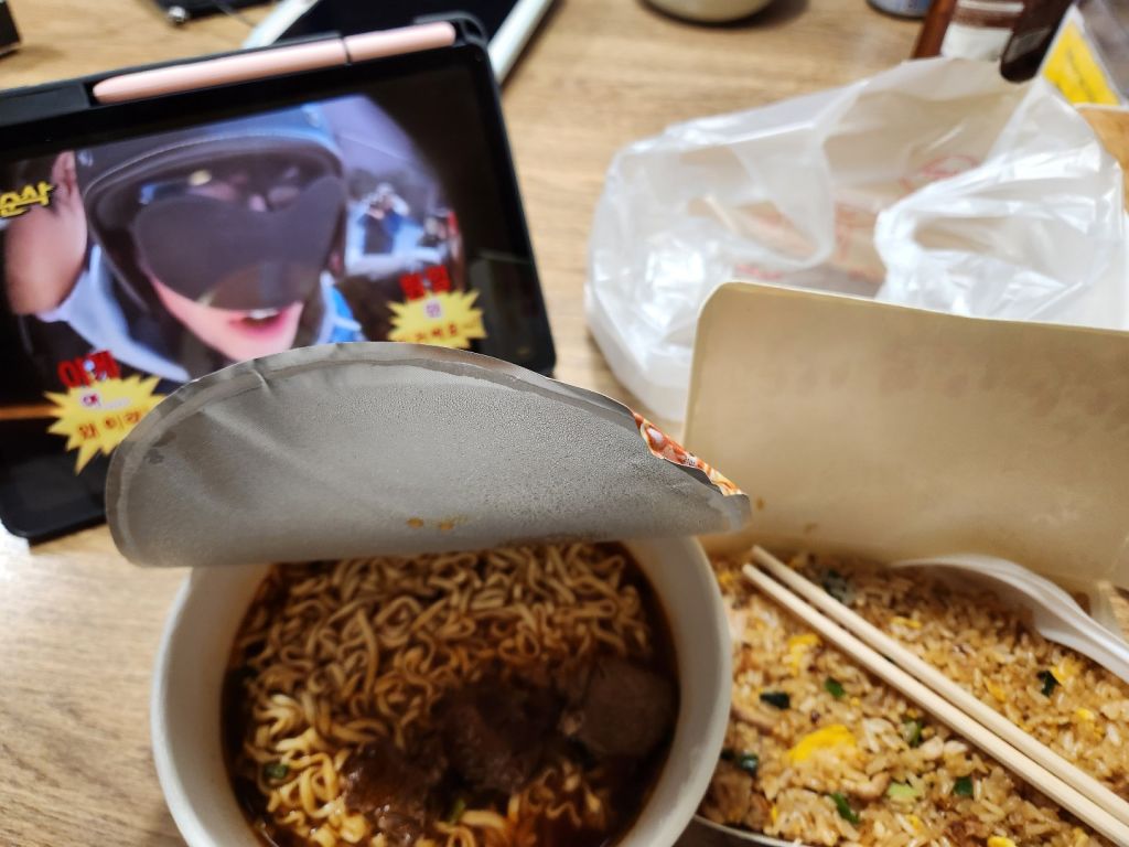 사람들 엄청 서 있던 돼지계란볶음밥 하나 사고 편의점에서 만한대찬 하나 사고